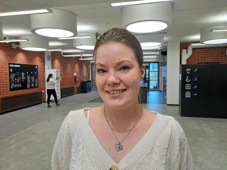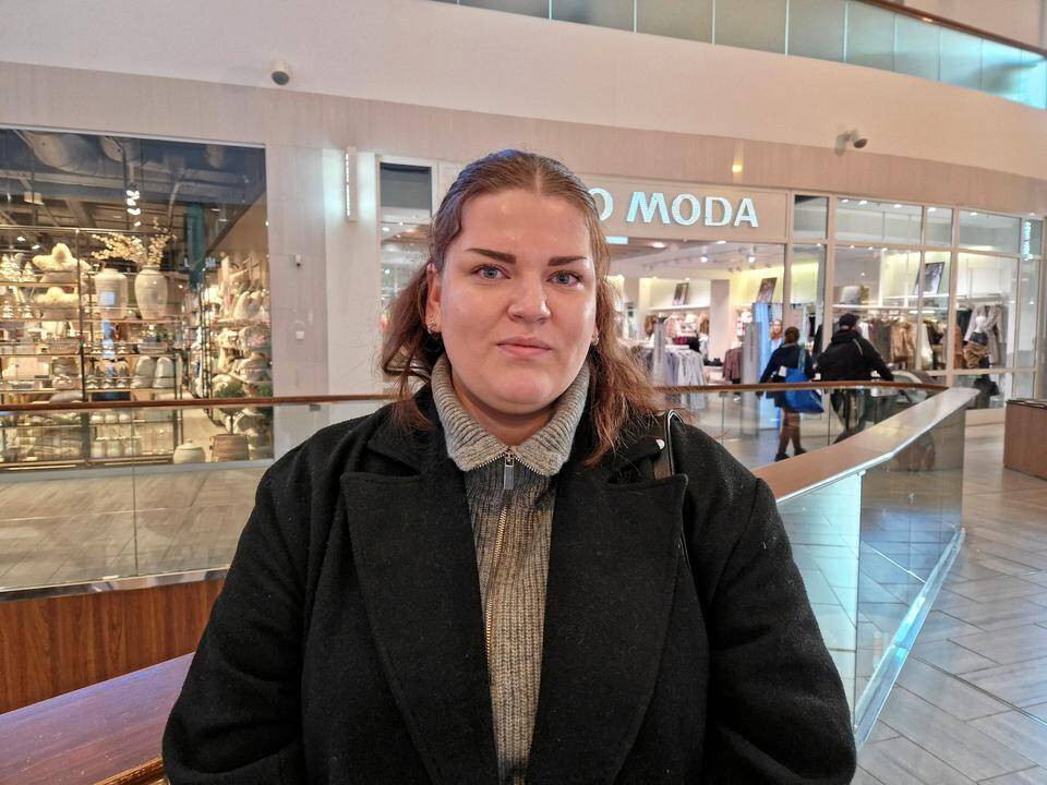 Ronja Roiha, 23, Joensuu: ”Kuopiossa käyn lähinnä Matkuksessa muutaman kerran vuodessa, mutta kerran olen käynyt myös keskustassa ja se oli ihan kiva. Täällä on paljon parempi valikoima käydä ostoksilla kuin Joensuussa.”