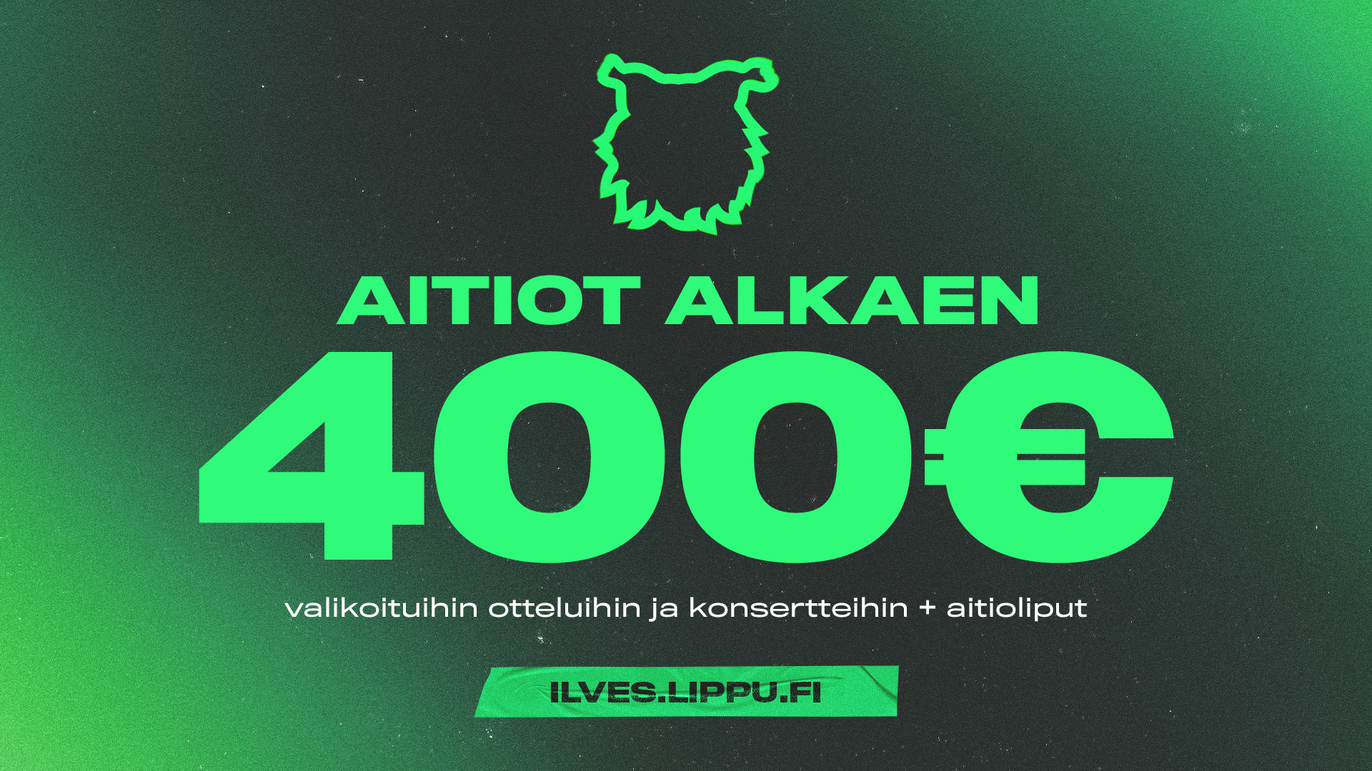 Aitioliput näihin otteluihin alkaen 27 €/kpl. Esimerkiksi 15 hengen aitiolle kokonaishinta on 904 € eli vain n. 60 €/hlö! Kampanja-aitioita on rajoitettu määrä. Lisätietoa aitioista löydät täältä: ilves.com/aitiot-otteluihin