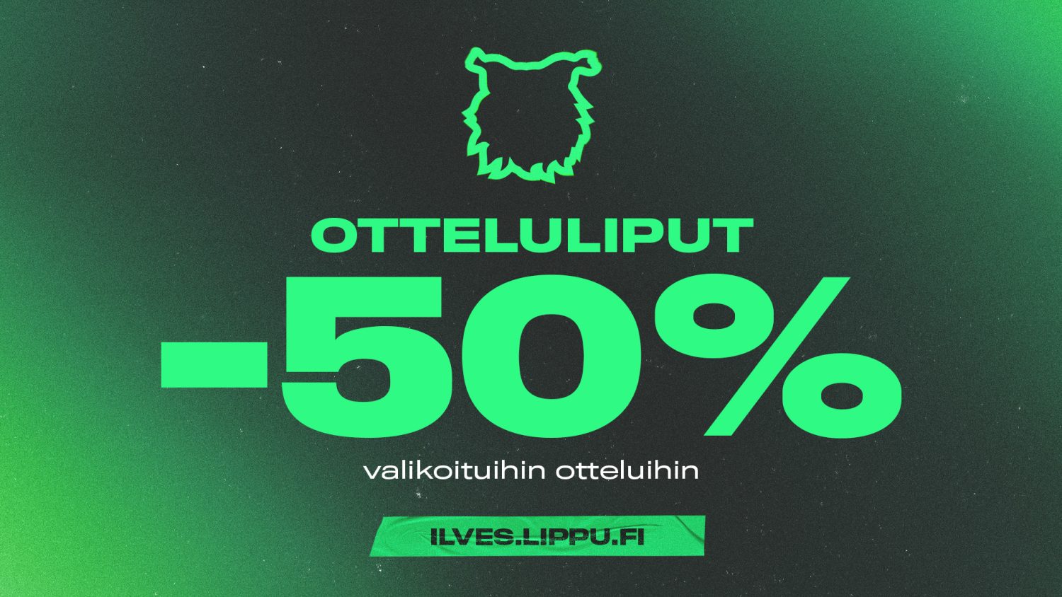 Kahteen tulevaan huippuotteluun on tarjolla -50 % alennus kaikkien kategorioiden normaalihintaisista aikuisten lipuista! Ilves-Pelicans -ottelu pelataan jo Black Weekin aikana, joten osta lippusi nyt: