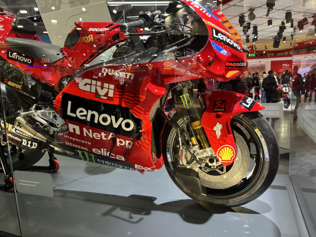 Lisäksi Brembo avasi konsernin eri brändien logiikkaa – ja uusin hankinta, Öhlins, esitteli päivitetyn bärnsi-ilmeen. Kaikilla Brembon omistamilla yrityksillä on oma erikoisalueensa ja vahvuutensa, joita pyritään tukemaan ja hyödyntämään konsernin sisäisesti – ja kunkin brändin identiteetti säilyttäen. Osastolla esillä ollut Marc Marquezin MotoGP-työkalu alleviivaa juuri tätä seikkaa. Jarrut ovat Brembon, jarruletkut J.Juanin, jousitus Öhlinsin, kytkin AP Racingin ja vanteet Marchesinin valmistamat.