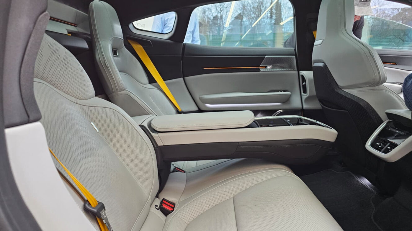 Kuten edellisessä jutussa tuli jo vähän pohjustettua, Polestar markkinoi tätä autoa 4+1-paikkaisena. Perusasetukseltaan Polestar 5 on siis nelipaikkainen, mutta tarvittaessa kookas keskikyynärnoja on nostettavissa pystyyn, jolloin autoon saadaan lähinnä tilapäisesti käyttökelpoinen viides istuin.
