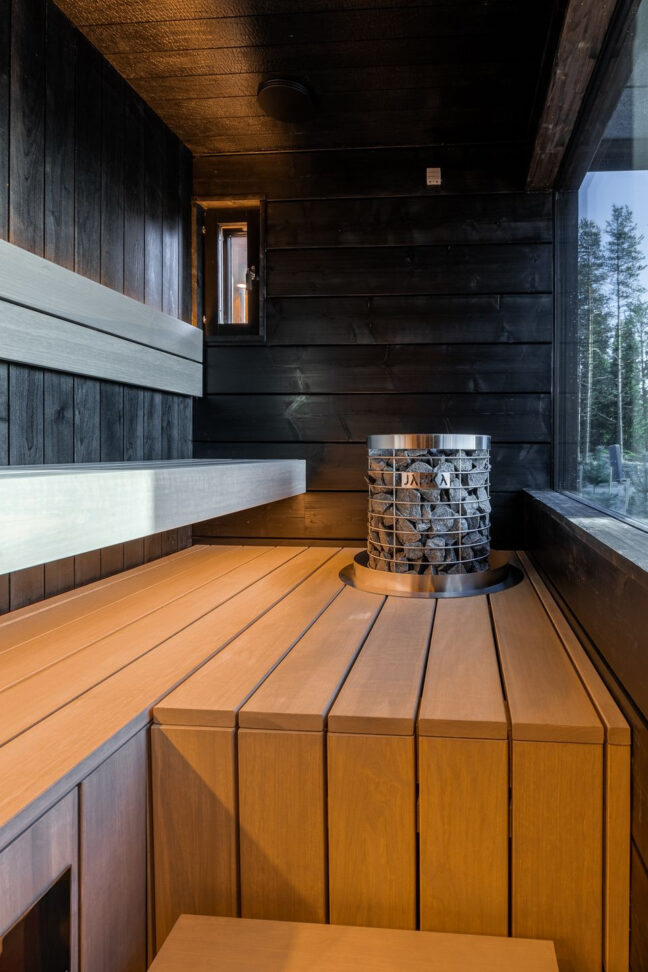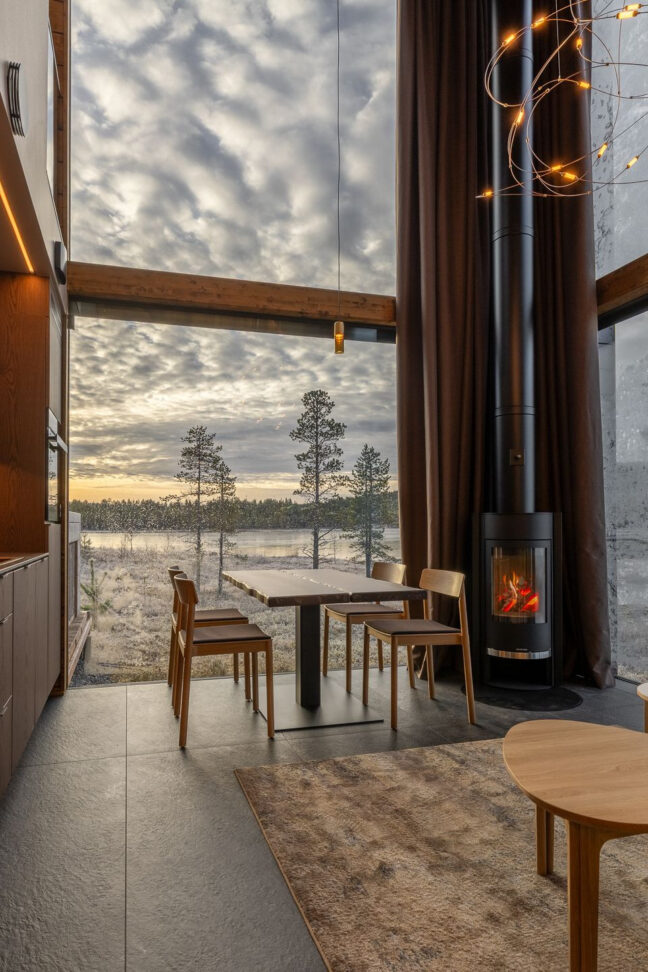 Hirrestä rakennetut loma-asunnot on varustettu omalla ulkoporealtaalla, saunalla ja kattoikkunoilla. Lämmitysmuodoksi on valittu ekologinen maalämpö.