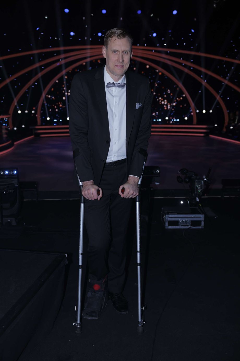 Anttila kertoo myös tarkemmin jalkansa tilanteesta. Anttila saapui livelähetykseen kyynärsauvoihin tukeutuen. Hänellä on oikeassa jalassa mojova ortoosi.