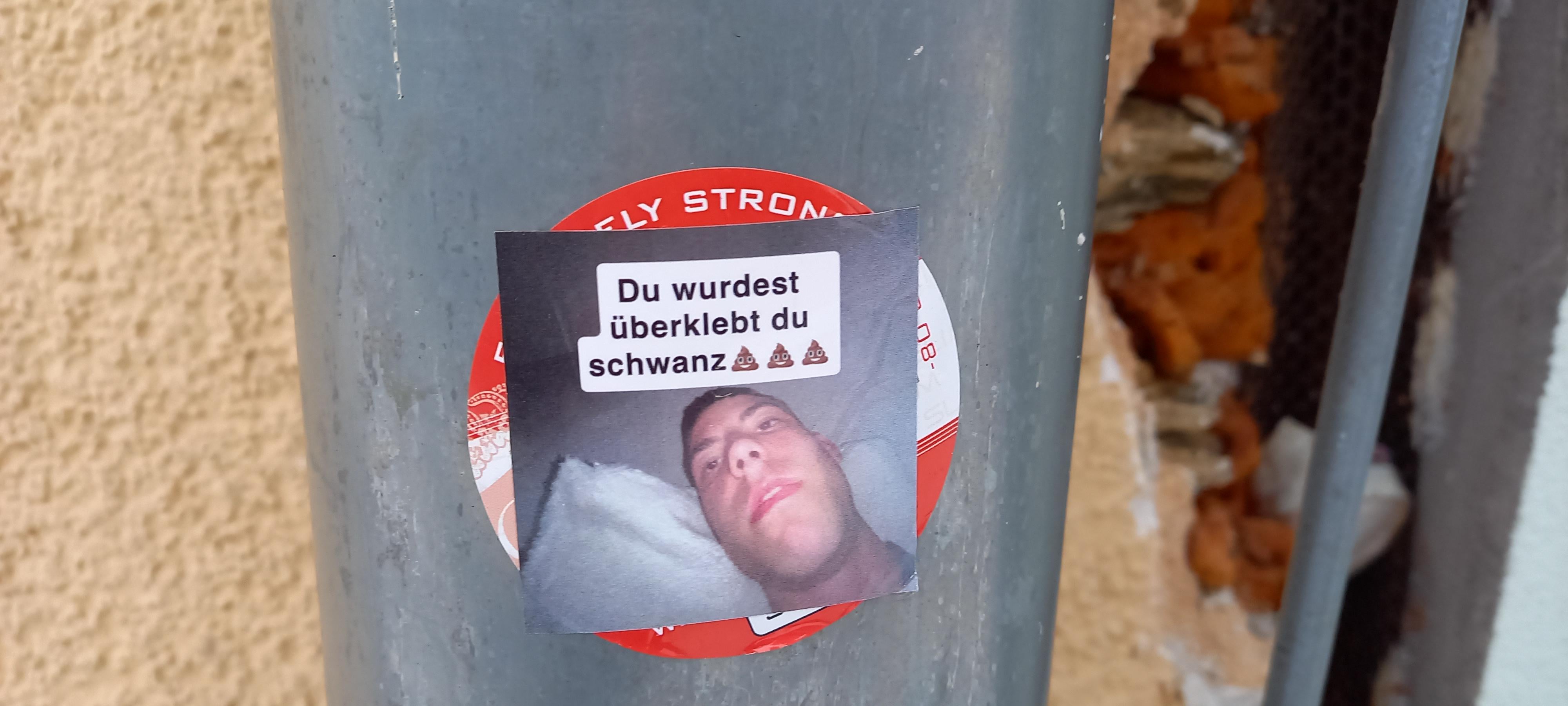 I’d say it’s just a meme to put a sticker on someone else’s sticker (there’s tons of political or sports team stickers in germany) which taunts them.