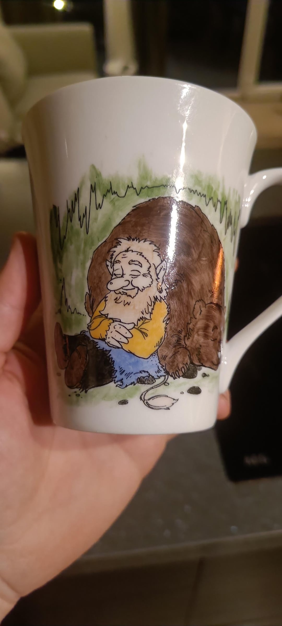 Ser helt lik ut som de koppene og tallerkene muttern malte når jeg var barn. Dette er nok et hobbyprosjekt gjort av en porselensmaler.