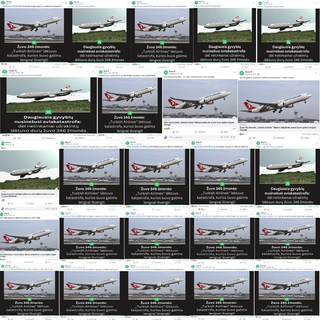Nuo 2024 m. rugpjūčio 15 d. 15min pradėjo sistemingai dalintis istorija apie Turkish Airlines Flight 981 – tragišką lėktuvo katastrofą, įvykusią 1974 m. kovo 3 d., kai dėl netinkamai užrakintų durų žuvo 346 žmonės. Tai viena skaudžiausių aviacijos nelaimių istorijoje. Tačiau tai, ką daro 15min – ne pagarba aukoms, ne edukacija, ne istorinis kontekstas. Tai – ciniškas klikų melžimas.