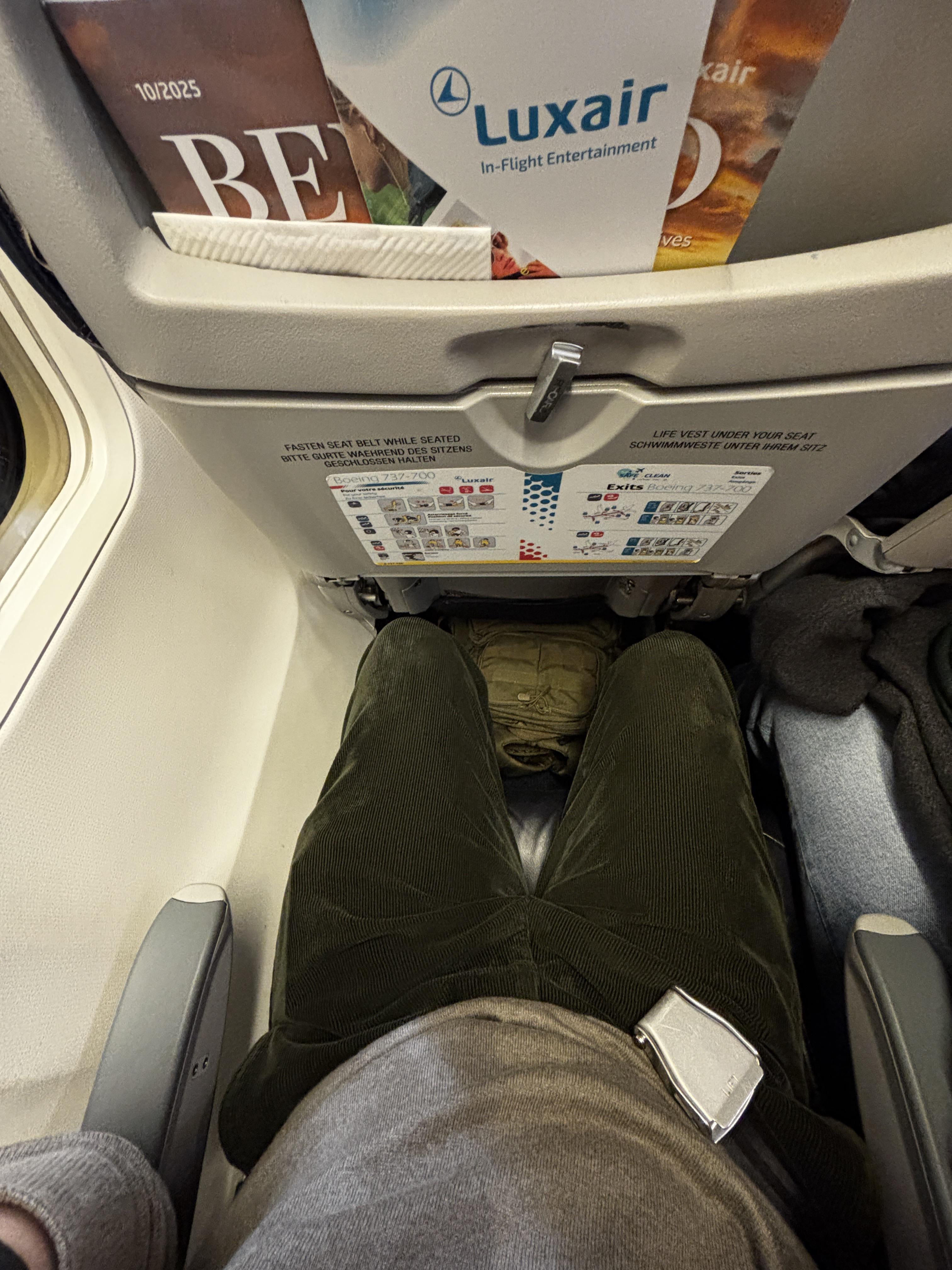 Can we have a discussion about how far Luxair has sunk? Currently on my return flight and the spacing of the seats on this 737-700 is just horrendous, I feel like Ryanair has more. On the 737 Max on the first journey it was fine, but this is ridiculous. Also the app is horrendous providing no updates and not remembering previously inputed information. How is this possible with their distinctly premium pricing. Also this is not a charter flight but a regular route.