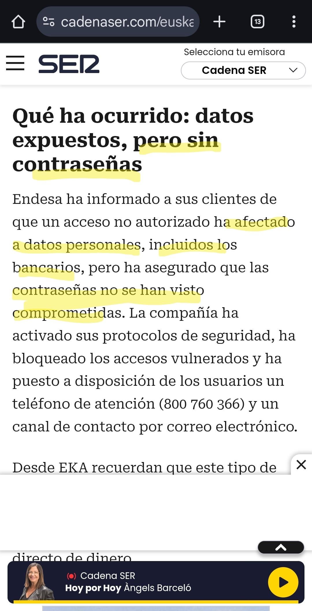 En cambio, las cuentas bancarias Endesa sí necesita saber su valor, asi que o bien las guardaban en texto plano, o bien encriptadas de forma que ellos mismos, y probablemente los hackers, sí puedes y habrán desencriptado.