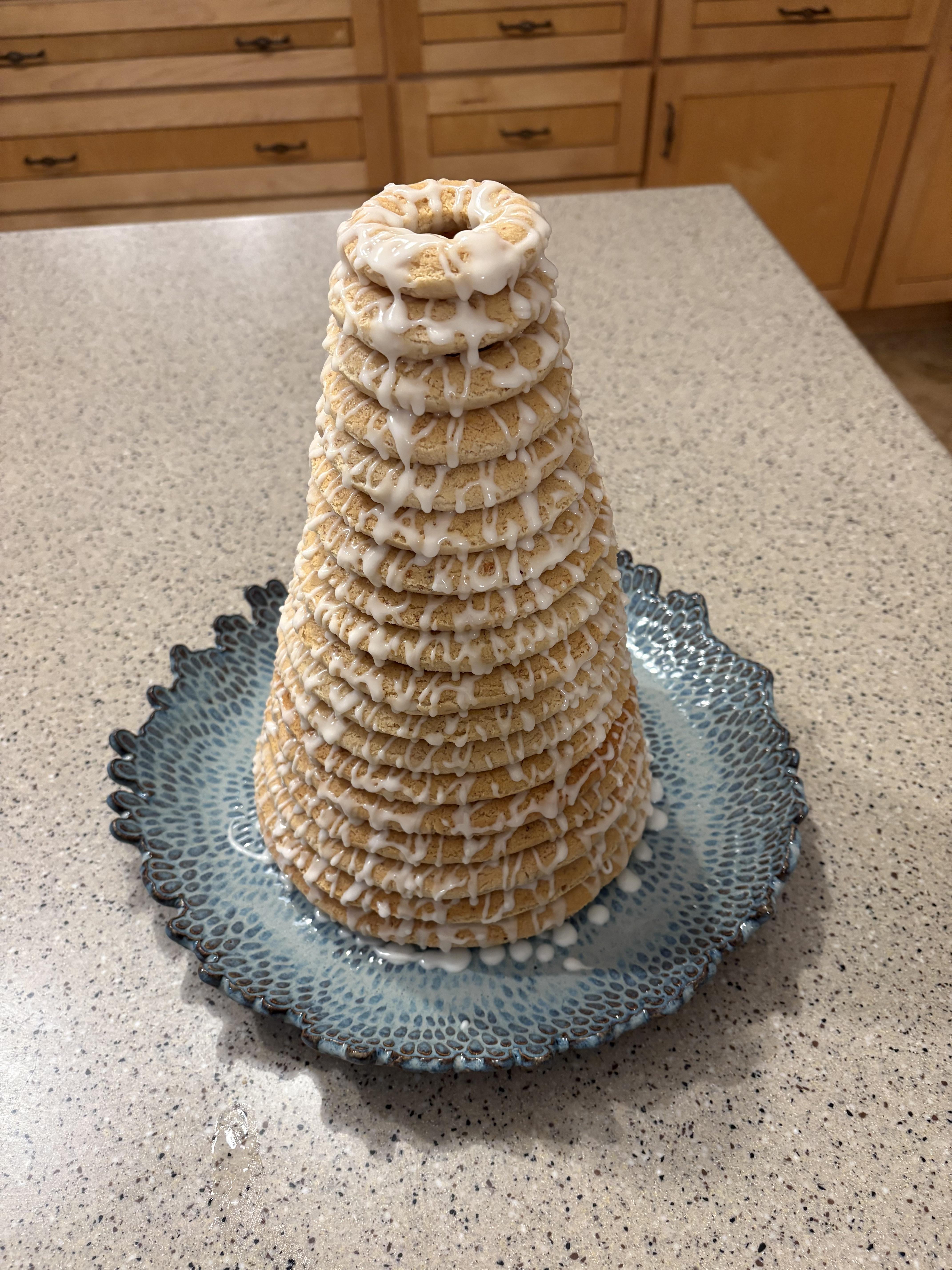 I’ve never seen kransekake with frosting before. Kransebukkake? (Sorry)