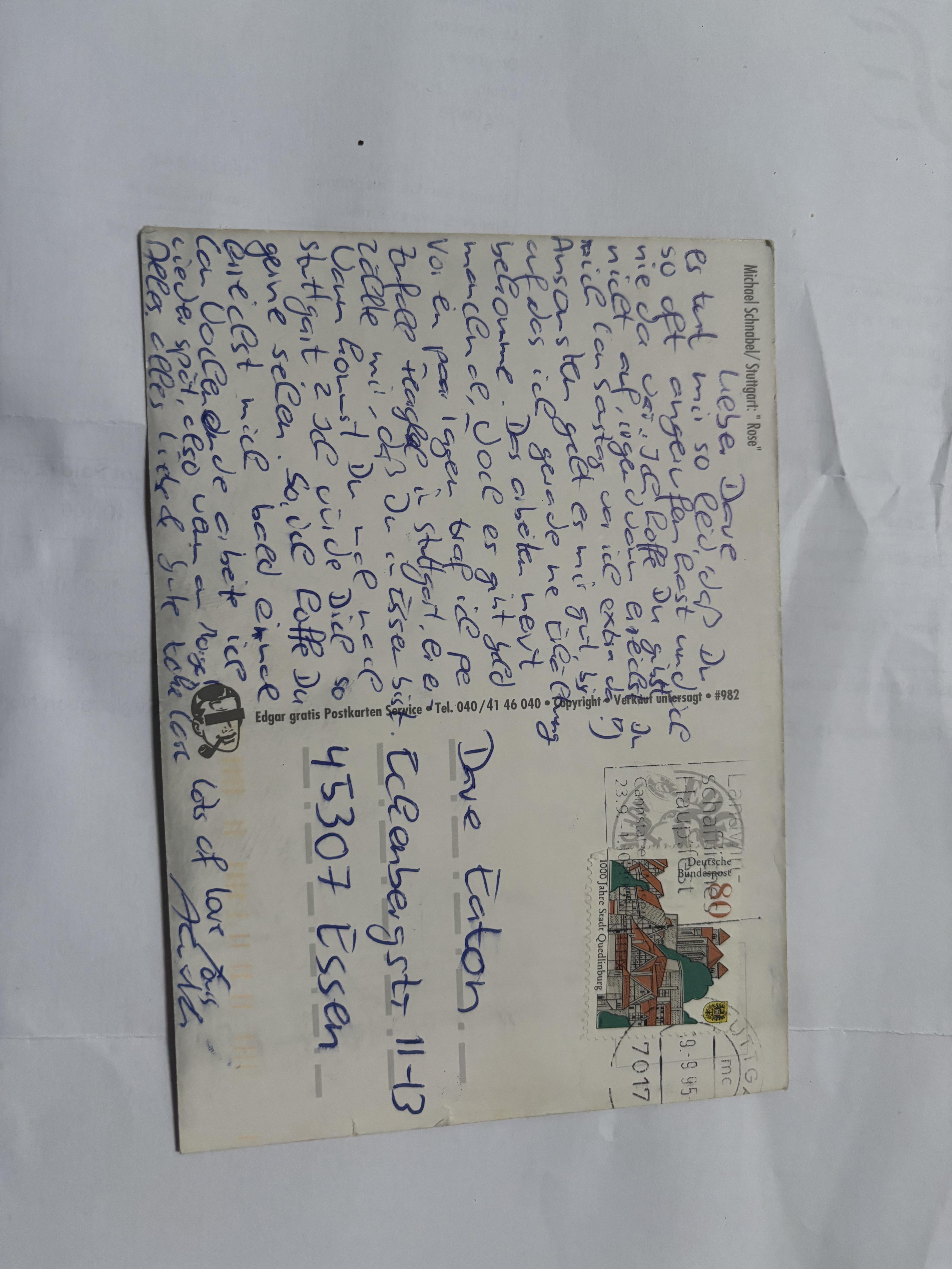 I found this post card along with a photo in an old book i wanna find the sender can anybody translate this for me?