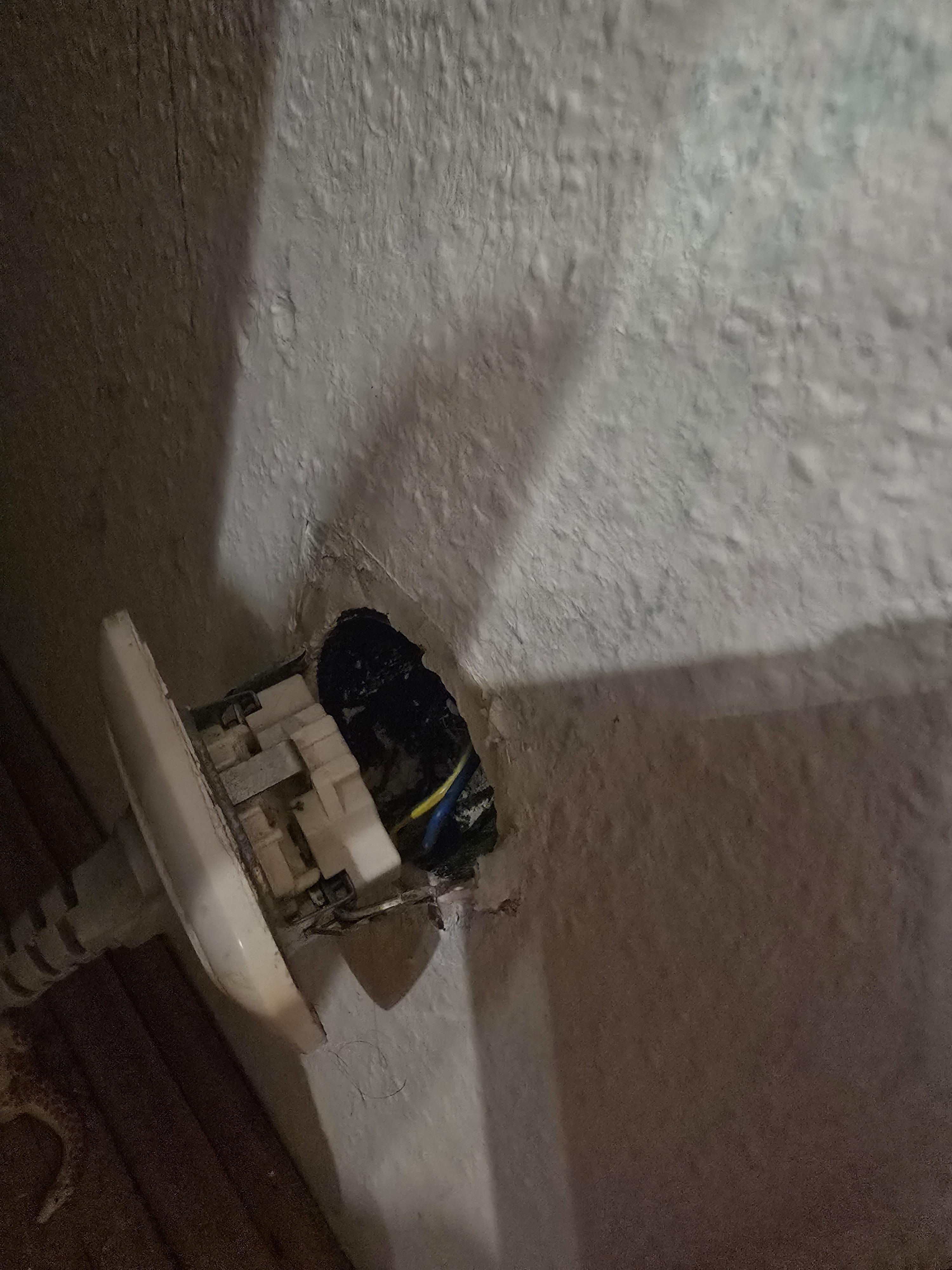 Push the socket back into the hole. On the left and on the right there is a clamp which is supposed to hold the socket inside. Make sure there is no cable in between the clamp and the wall.
