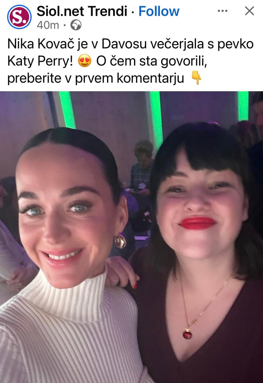Nika je pa pr men s temle zgubila polovivo tock. Katy Perry je pac govno od cloveka. Kdor ne ve, nej pogugla njene nepremicninske “posle” v Kaliforniji. Nika kt javni glas etike bi se je mogla izogibat k kuge. Pa ji je bil selfie zgleda bl pomembn. Fail.
