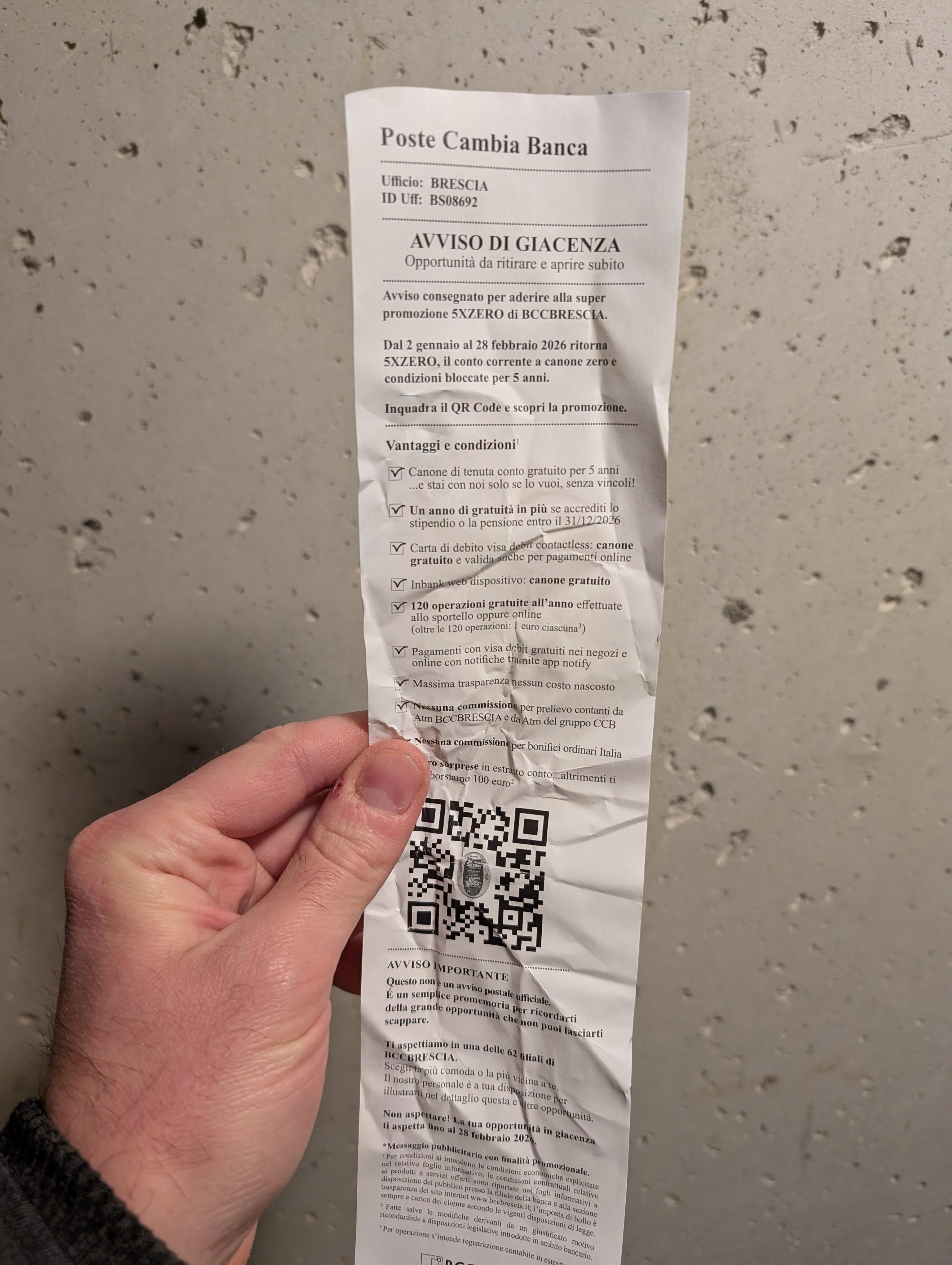 Ora so che schiferò BCC Brescia per tutta la mia vita ma, quello che non so, è se è legale spacciarsi per un avviso di mancata giacenza postale.