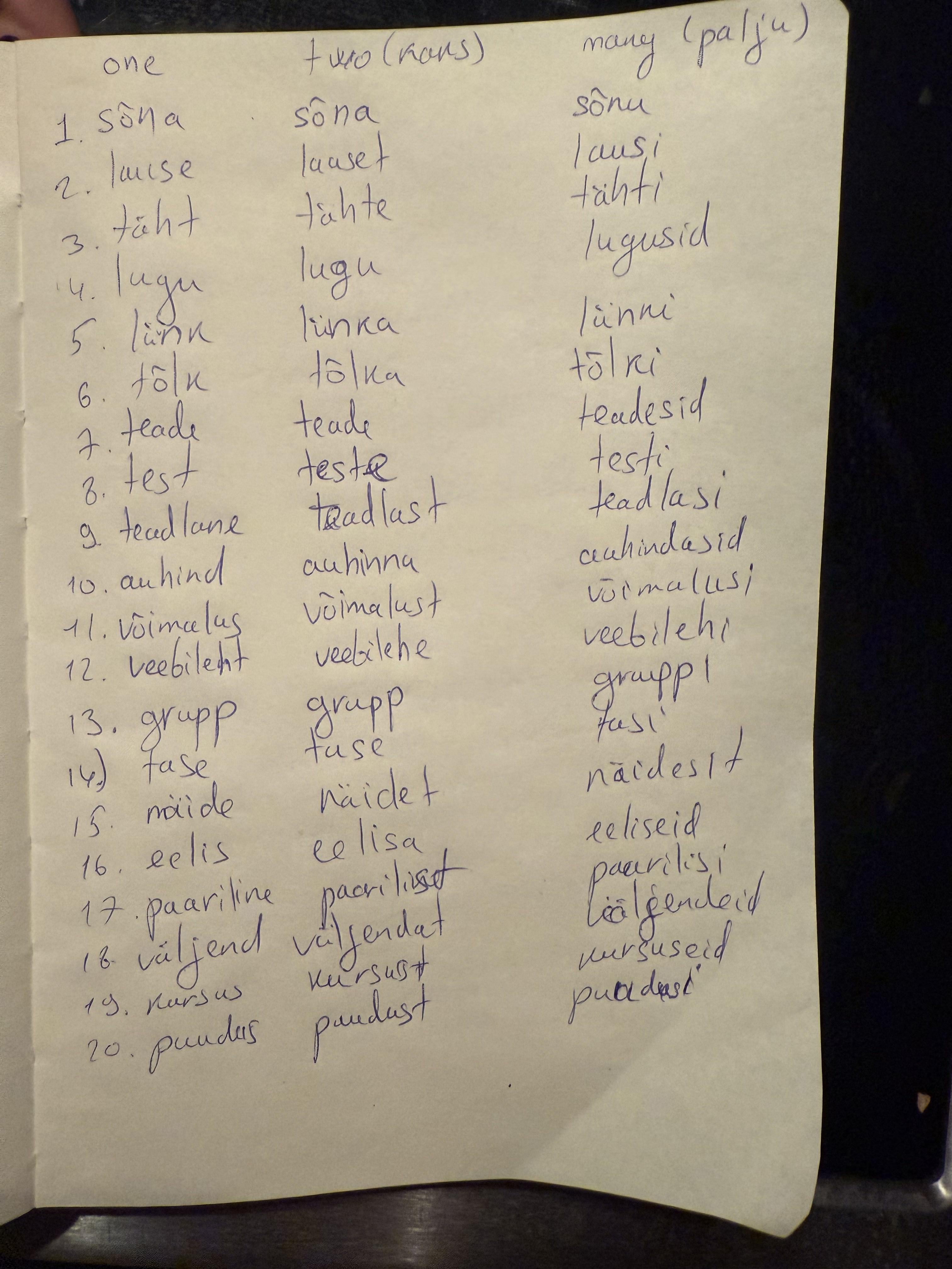 As a foreigner when you learn new words in Estonian, as far as I know you need to know 3 different cases: Nimetav, omastav and osastav. The photo is from the exercise I am trying to write words where you should say one (nimetav), two (requires osastav), many – palju (osastav in plural). Do Estonians in conversational language uses these cases correctly? In the photo above I tried to guess 20 words (probably made bunch of mistakes). I am wondering if native speakers know it correctly, if as a foreigner if I say palju sõnad instead of palju sõnu would it be a noticeable mistake?