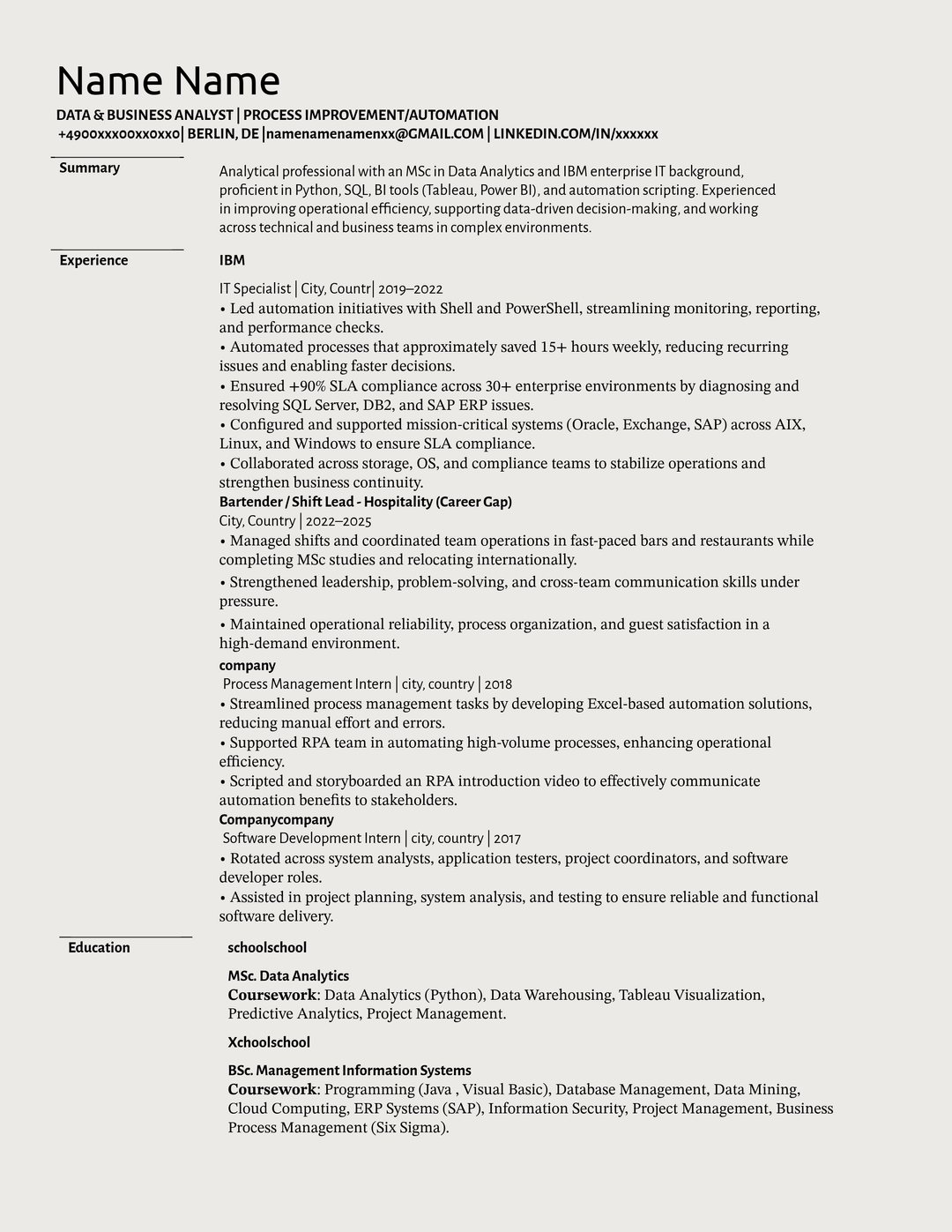 I have moved to Berlin, Germany with a hope to change my life a bit cause the job that I had back then started to be boring and the state of where I am from (it is hidden in the cv) was going crazy. I had some savings and invested to get out but I learned bunch of things when I was working there. I came to Berlin as a student and completed my Masters degree in Data analytics, it was not one of the known schools in Berlin, it is the school that accepts literally everyone but it is listed in ANABIN so I thought it should be fine.