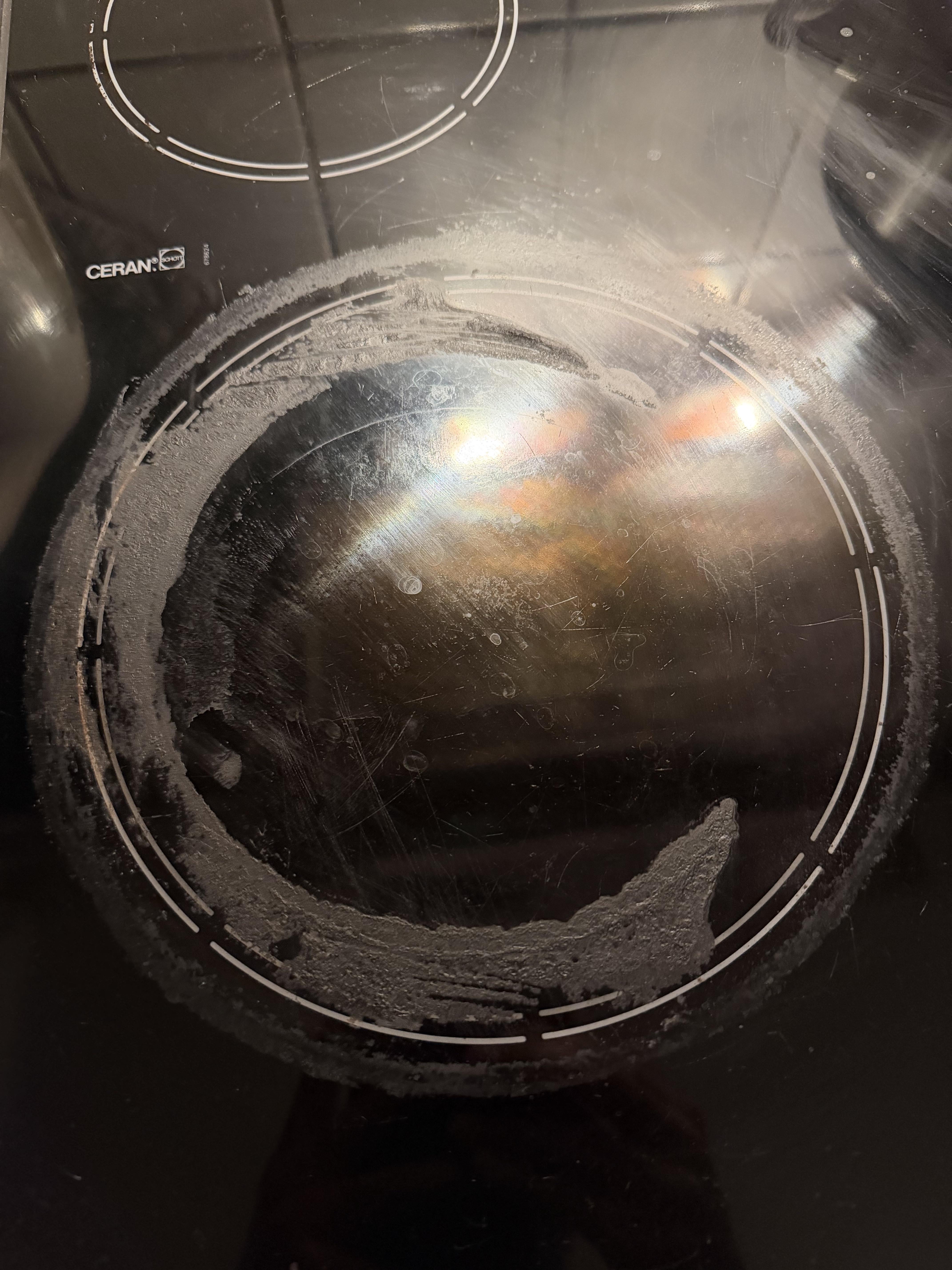 1. Just scrape it off with a blade (any will do, you can get a “Ceranfeldschaber” if you feel the need)