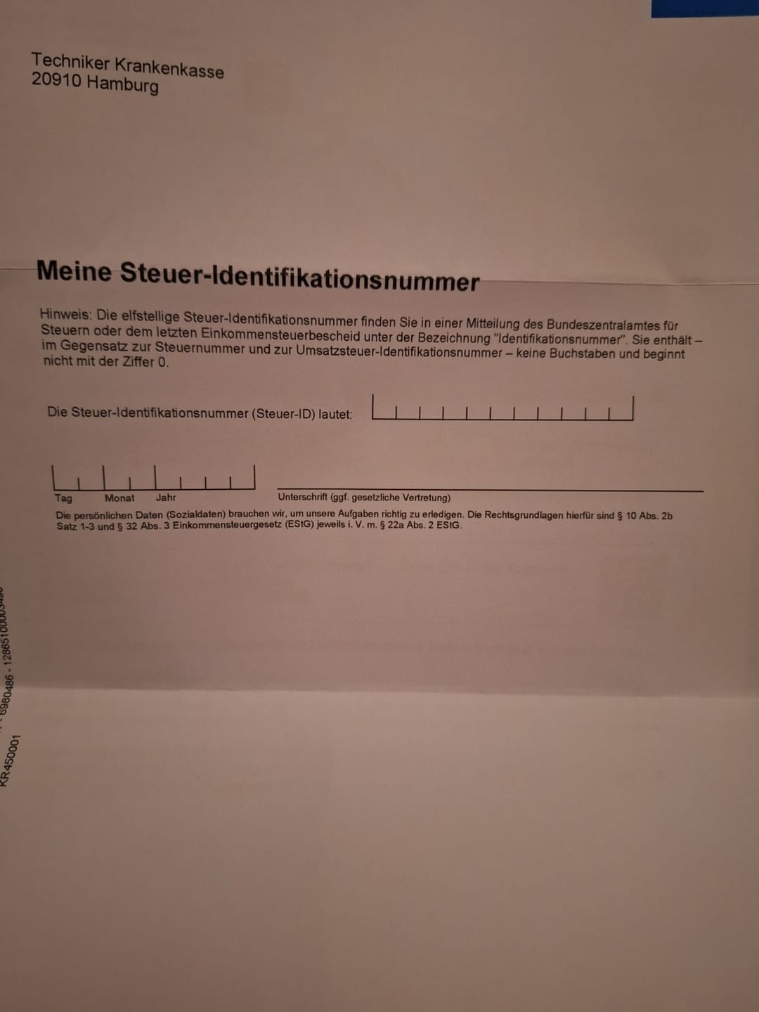 Also, where do I get this Tax Identification Number that they asked for because I received no letter that includes it and I'm also not sure what the other numbers they mentioned are. I only received a letter of my "Versicherungsnummer". If someone can briefly mention what each number is and where to get it I'd much appreciate it. Thank you so much.