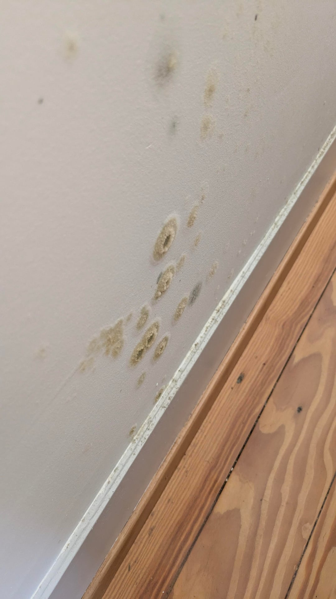 7. Are those walls on an „outside“ wall? It was very cold the last few days. When the walls are not enough insulated water begins to condense and soon you have those things.