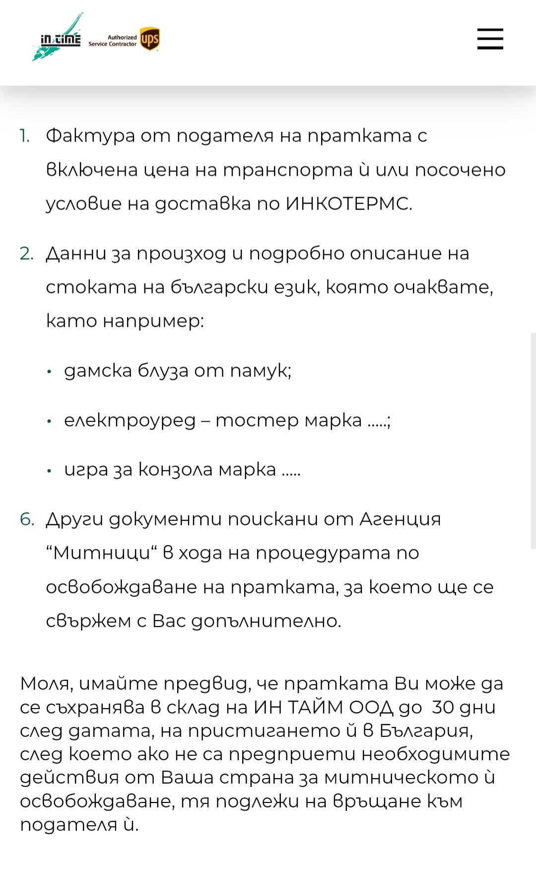 На 11.01.2026г си поръчах 3 спортни фланелки, 1 баскетболен потник и 2 суичъра от сайта Fanatics. Интересното е, че въпреки поръчката е една, някак си излиза, че е разделена на три пратки (снимка 1,2 и 3). Второто интересно нещо е, че платих не малка сума пари, към която се включва и митото (секция Duty/Fees на снимка 4). До онзи ден имах тракинг номер от UPS, с един номер на пратка (предполагам и трите са вътре). Вчера късно вечерта получих известие от Sameday за предстояща доставка на пратка (снимка 5). Пренасочих я не до адрес, а до автомат, поради наличието на възникнали ангажименти. Днес сутринта ставам и получавам известие от InTime за пратка, която подлежи на митническо освобождаване (снимка 6). Въпросните, които уж навреме вършат нещата, дават някакво описание какви са следващите стъпки (снимка 7,8 и 9). От описанието не става ясно, как сам да си свършиш нещата, например дали пратката е в БРСЦ или на Карго до Терминал 1. Не знам на коя митница да звънна… отделно, от сумата на пратката, оставам с впечатлението че в нея са само двата суичера и баскетболният потник (снимка 10). От 30 мин. се опитвам да се свържа с т.нар. консултант на InTime, но не става. Във великото упътване, НаВреме са описали, че и те могат да я освободят за мен (ппц не трябва ли след като съм си платил всичко, включиетлно митото, те автоматично да го направят за мен?). За да я освободят трябва да попълня някакво умряло пълномощно и да прикача една камара фъшкии, включае банково извлечение, описание на стоката и прочее. Някой знае ли аджеба за какво става въпрос, как да подходя и дали е възможно самите пратки наистина да са 3 отделни и да дойдат с 3 различни фирми в 3 различни дни?