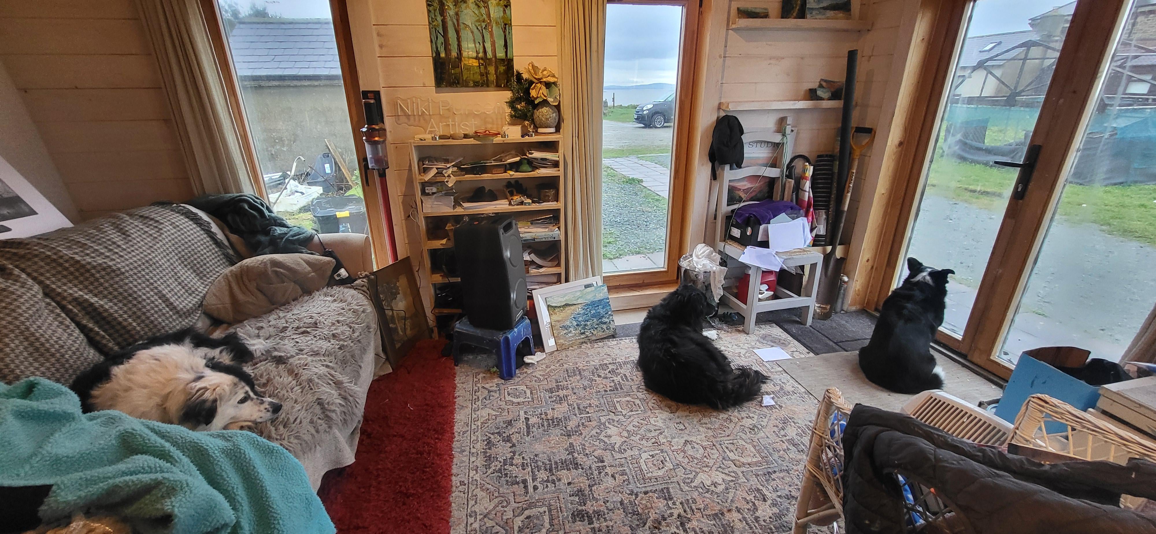 Don’t ye be getting any notions about, ‘Sun’, girl… Your studio does look cosy, though…for a glorified shed. 😜At least you’ve got views – all I can see from the bedroom is the B4469 and a heavily tagged fence.