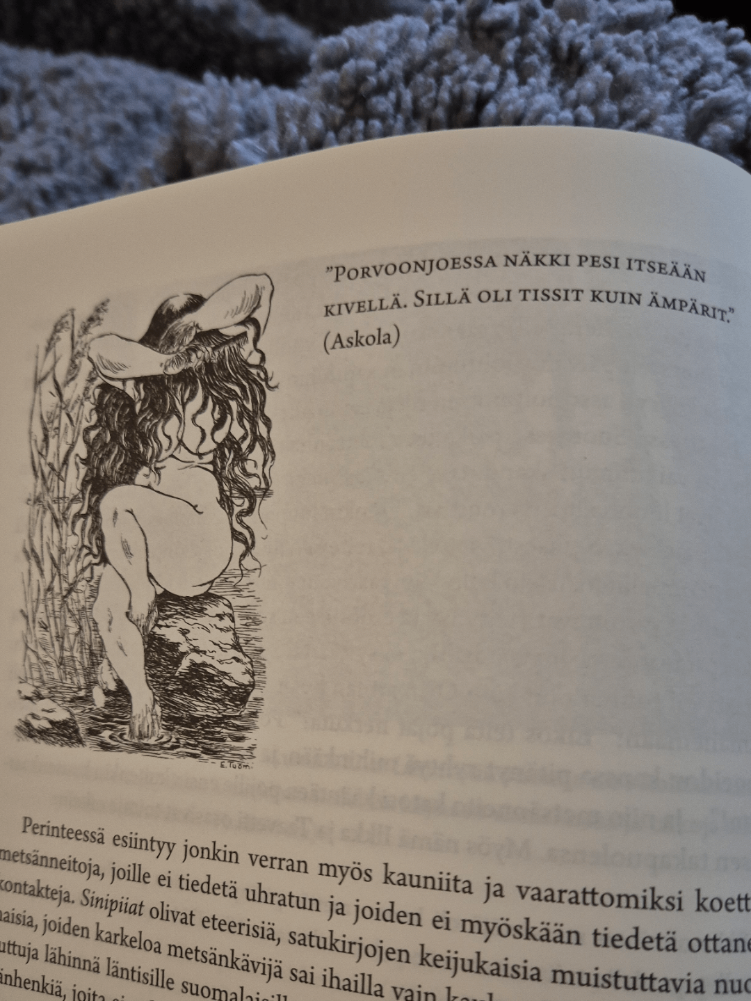 I found this in a book called "Suomalainen Kansanusko" by Risto Pulkkinen. Its on page 76 and talks about näcken, metsänhaltija(fairy?) and mermaid. — PreposterousClam Tags:Finland 2 comments Does sound like an interesting book certainly 📖 I read a description about mermaids in a local history from around 1900. It said mermaids had such big and long buckets, that they could throw them over their shoulders. Leave a ReplyYou must be logged in to post a comment.