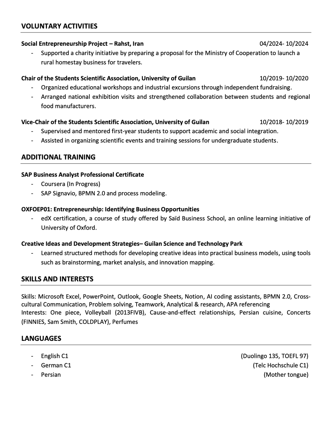 Some of you mentioned I should post my resume on reddit to get better insights about my situation. I tried to hide my personal info. (Also I have another version in which I have uploaded my picture as well, let me know which one is more suitable for Germany's job culture).