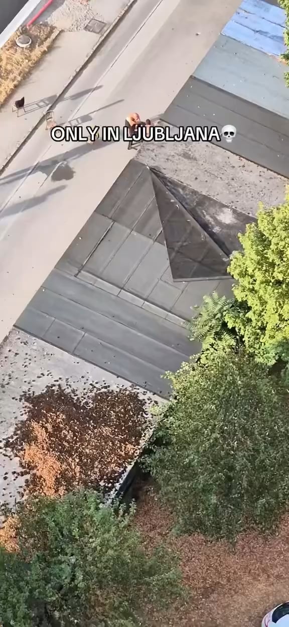 Ne vem zakaj je bil z avtom tam… ampak stol tud nr sodi na plocnik… Klofuta je pa dobr počla😆