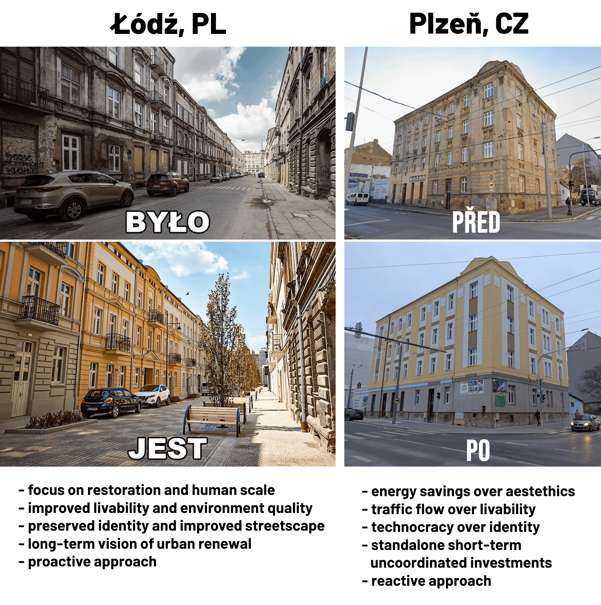 Protože to v Lodži vypadá jako nějaká vedlejší ulice, která měla minimum provozu, kdežto to v Plzni má přechody a světla.