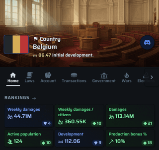 Ik post dit hier in de hoop meer Belgische spelers naar WarEra te trekken. Kort uitgelegd: het is een geopolitiek spel (vergelijkbaar met CitiesWar, e-Republik en andere), waarin we oorlog voeren tegen andere landen en aan politieke roleplay doen.