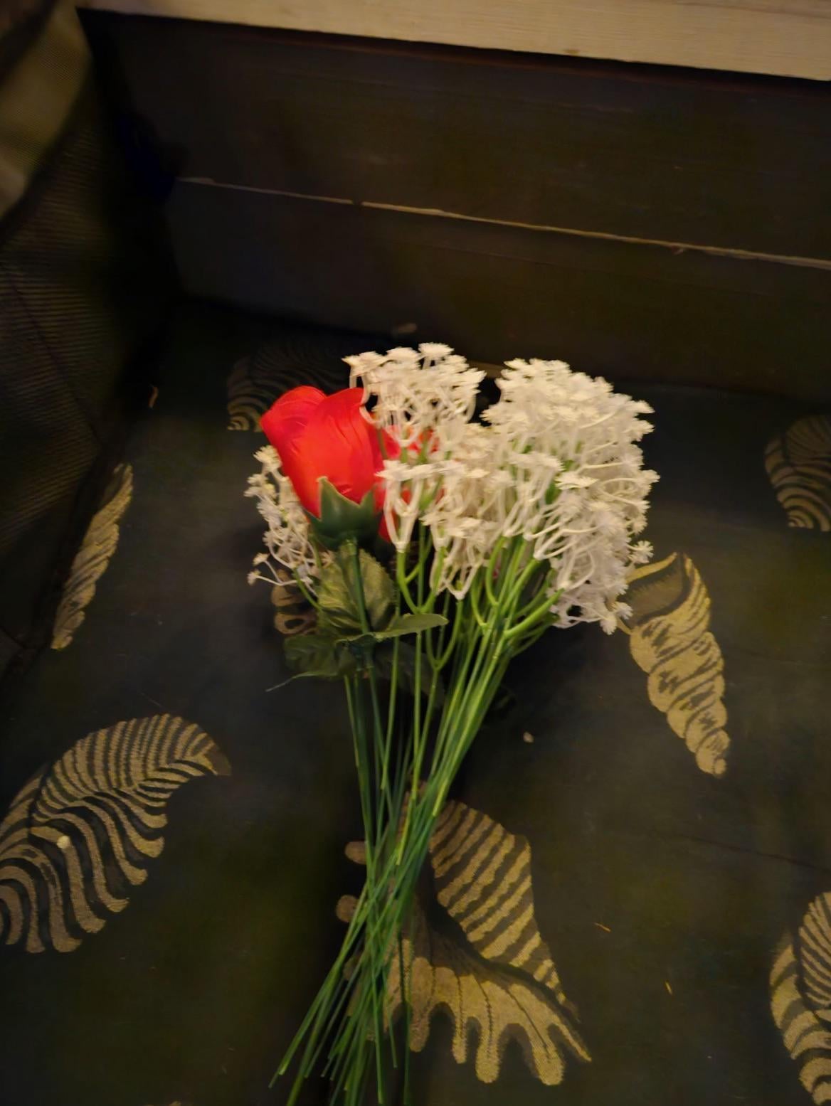 När jag kom hem från jobbet idag så låg det plastblommor utanför dörren på bron till vårat hus? Till info så bor vi i en mindre ort på landet.