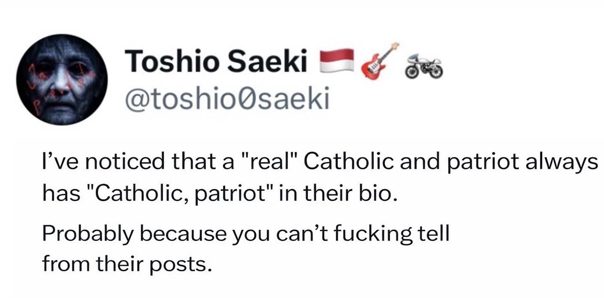 In the name of God FAFO — SlyCooper2137 Tags:Poland 2 comments Religiosity is mask of sanity for conservative psychos. Why some have eu flag and Poland flag on their bio when they want Poland to cease to exist for sake of eu state? Leave a ReplyYou must be logged in to post a comment.