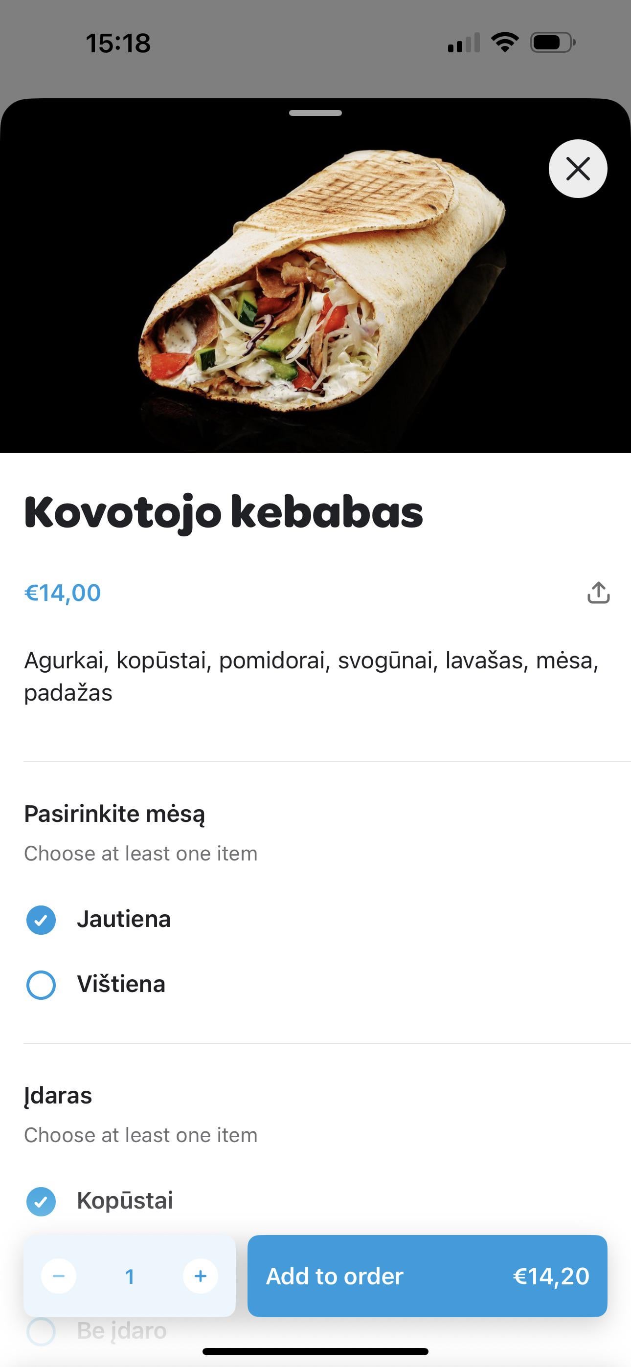 Tai žiūri kovotojo kebabą kuris sveria 1kg + wolt antkainis. Pats save ragebaittini ir dar į internetą keli.