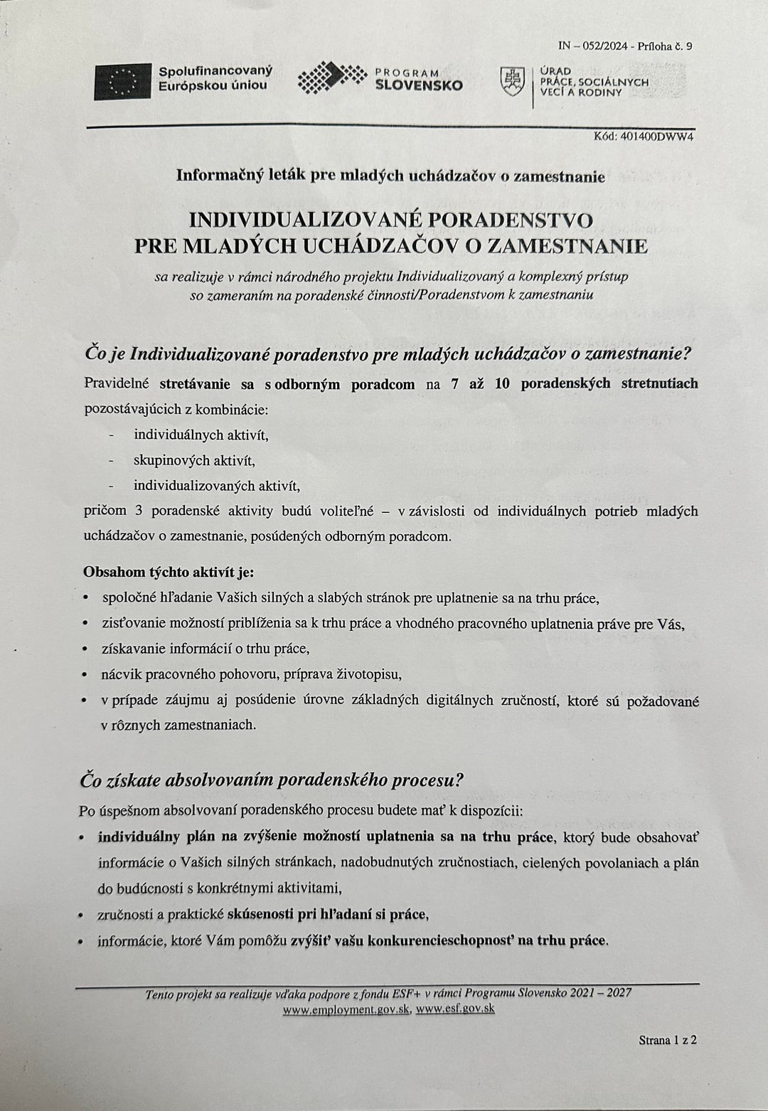 Prišiel ma navštíviť a spomenul mi že je povinný absolvovať takéto poradenstvo (Individualizované poradenstvo pre mladých uchádzačov o zamestnanie) aby ostal aj naďalej evidovaný a aby boli za neho platené odvody – zdravotné samozrejme.