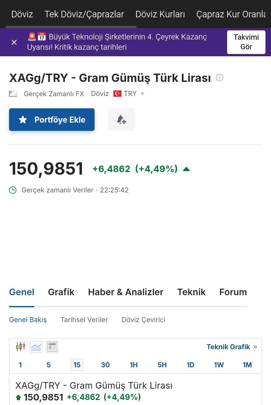 Gümüş şuanda dijital piyasada 150 TL den işlem görürken fiziksel olarak 200 TL ye kadar çıktığı belirtiliyor Not:Bu fiyatlar her dakika değişebilir yatırım tavsiyesi değildir. Kaynak:investing.com — AdFront6345 Tags:TurkeyTürkiye 1 comment bankalarda niye düşük böyle Leave a ReplyYou must be logged in to post a comment.