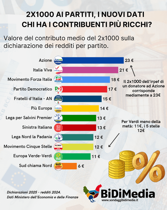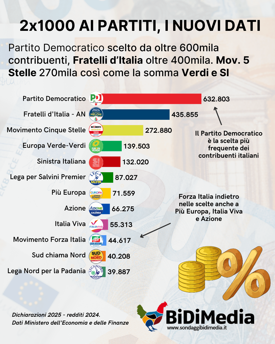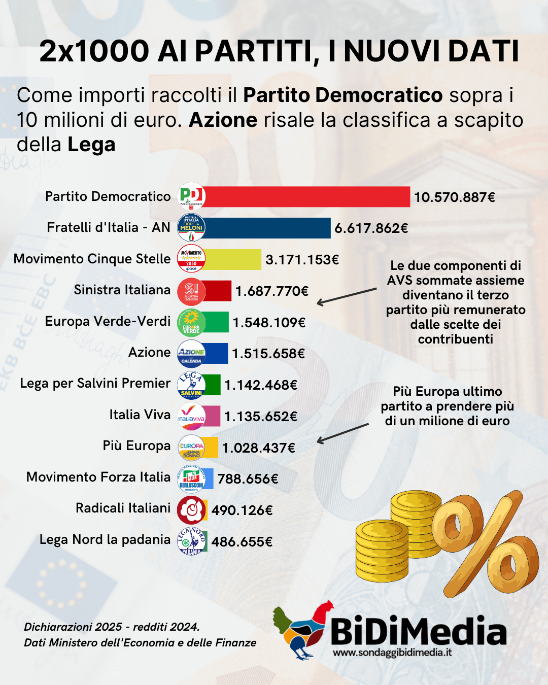 La Lega è in fondo perchè per dare il 2 per mille bisogna pagarle le tasse, presumo.