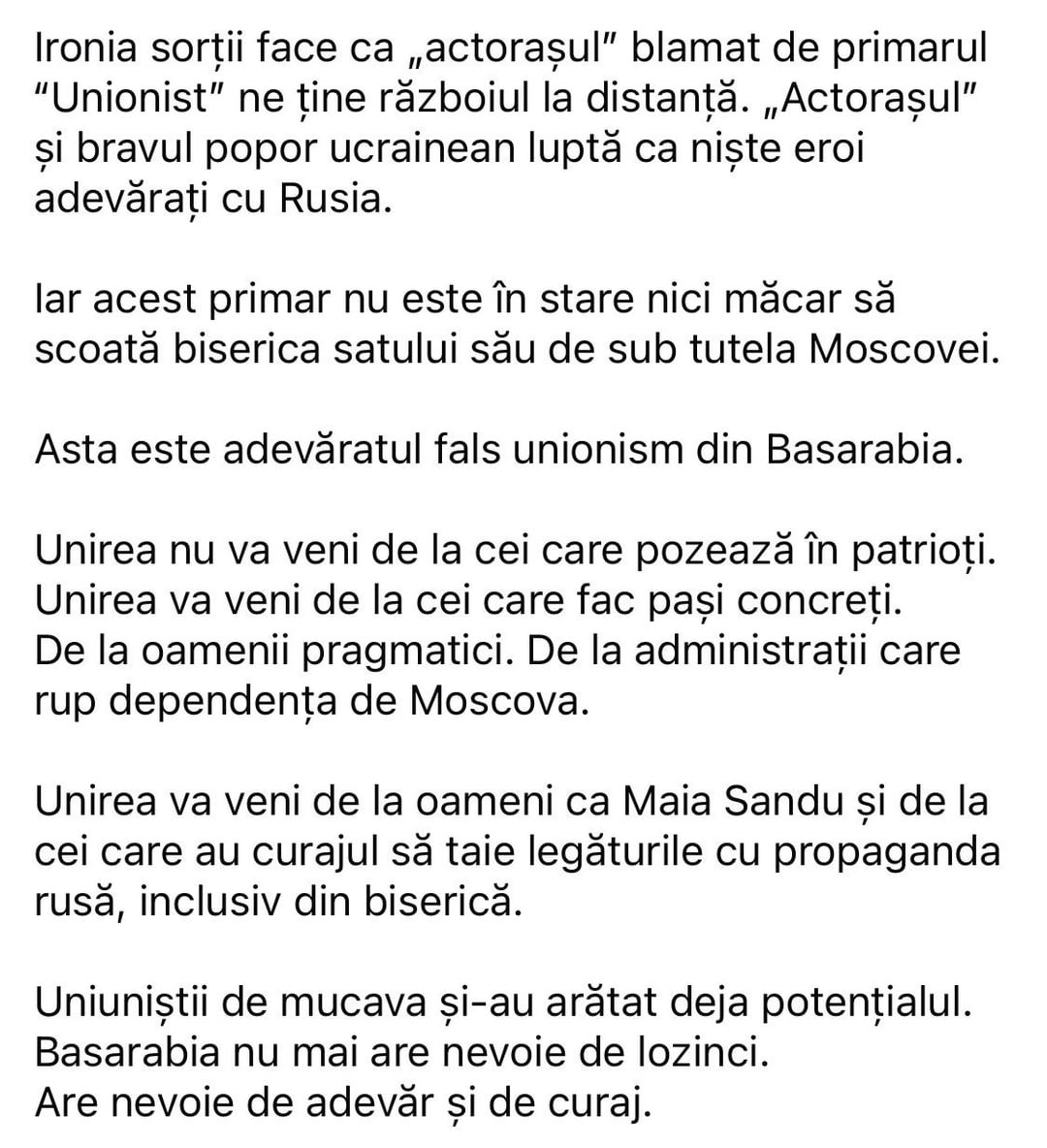 Pâinea asta unionistă de dragul puterii e cam aceiași pe care Simion o mănâncă de ceva timp. Nu zic că nu a fost cândva sincer, dar e fix cum descrie domnul aici.