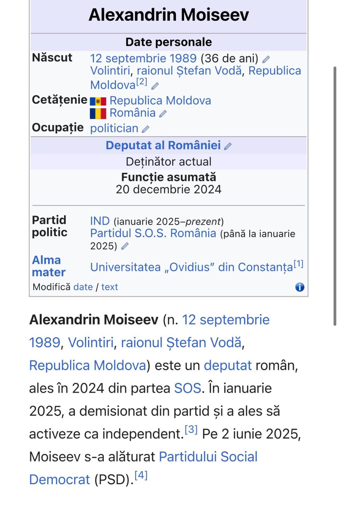 Il cunosc personal pe Alexandrin din 2009, inca de atunci cand se lupta in sat cu unchiul care era primar de la PSRM 🙂 , a fost unionist de atunci si ma bucur ca isi pastreaza valorile . De traiectoria politica din Romania nu cunosc nimic, dar acum cum am citit chiar sa descurcat bine 🙂 , sa intre in pe listele la un “partid” noname si dupa sa isi vada de treba , bravo lui. 🙂 Acum ca sa a trecut la PSD – so dus si omu unde is mai multi din zona in care locuieste ….