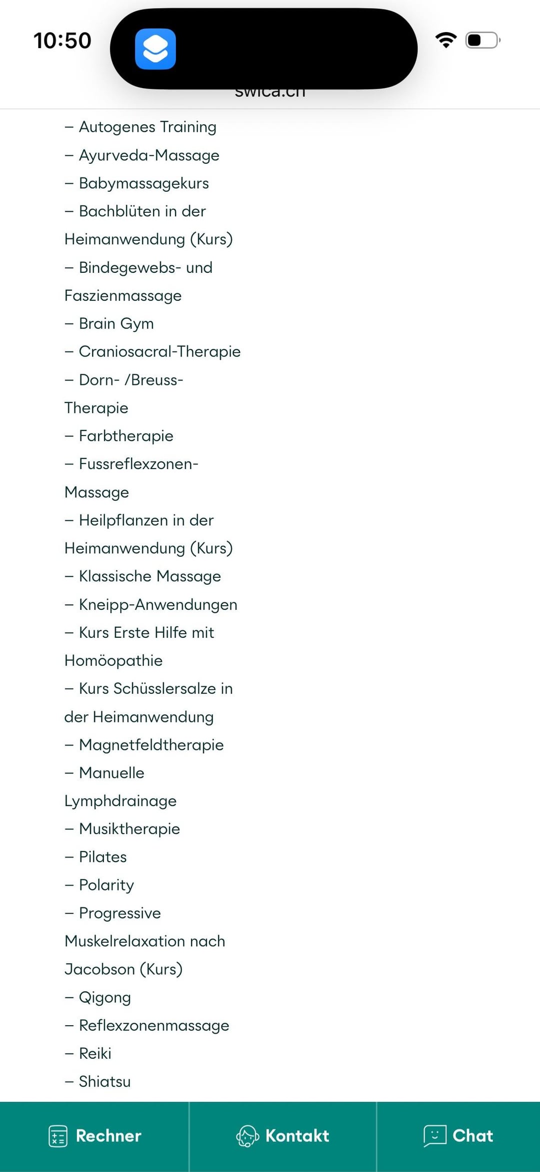 This is the final draw for me I am done. So turns out Swica does not pay for a baby first aid course, which almost all parents want and all parents do need to ensure the safety of their children, BUT it is happily paying if I take a “homeopathic first aid course”, schlüssler salz, or energy field therapy?