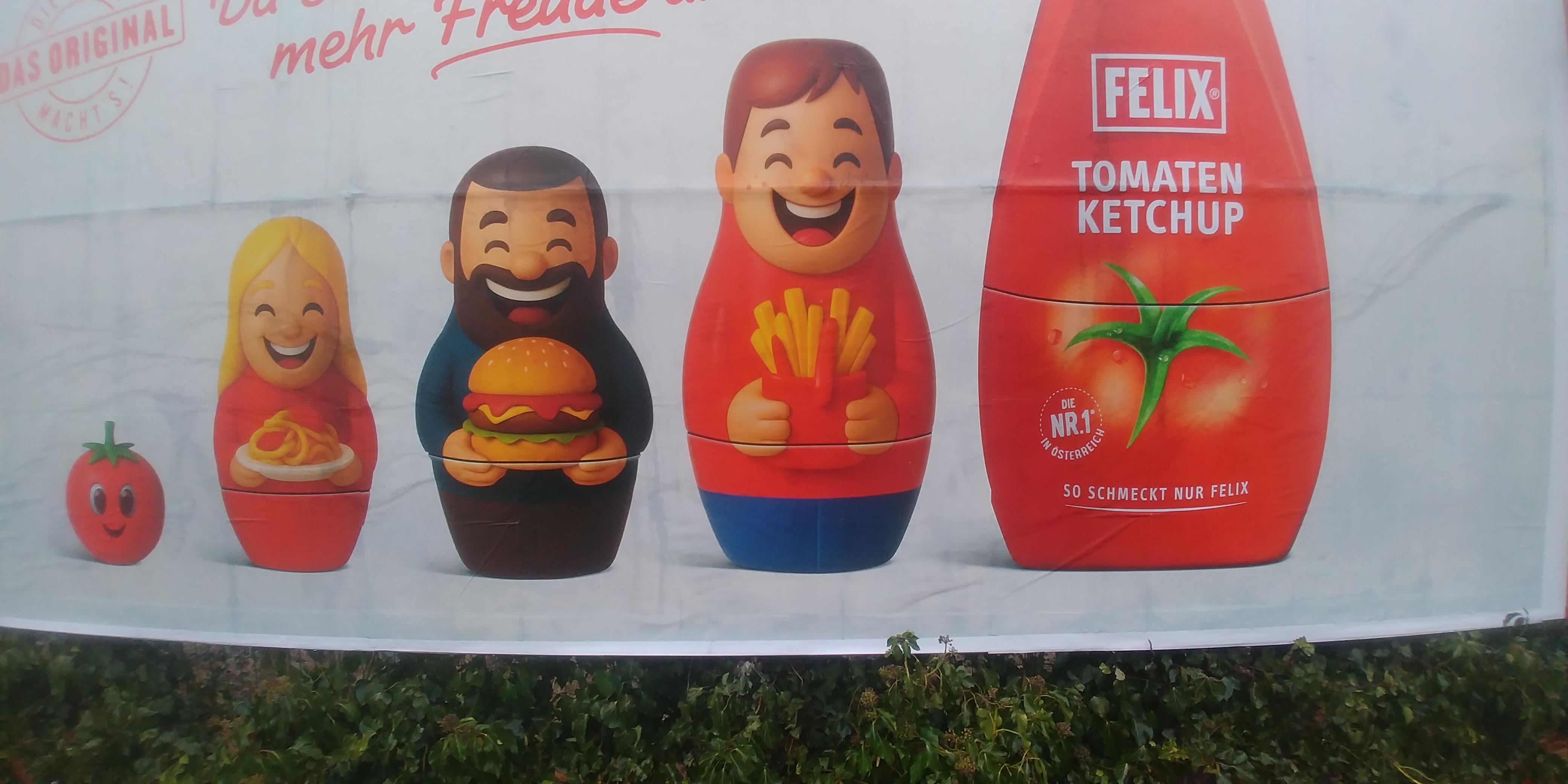 Eine russische Matrjoschka Puppe in diesen Zeiten als Werbung herzunehmen ist aber auch relativ unglücklich… oder vielaussagend. Je nachdem.
