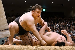 If he wins the next one, he will be the first caucasian to be promoted to the highest rank of Yokozuna.