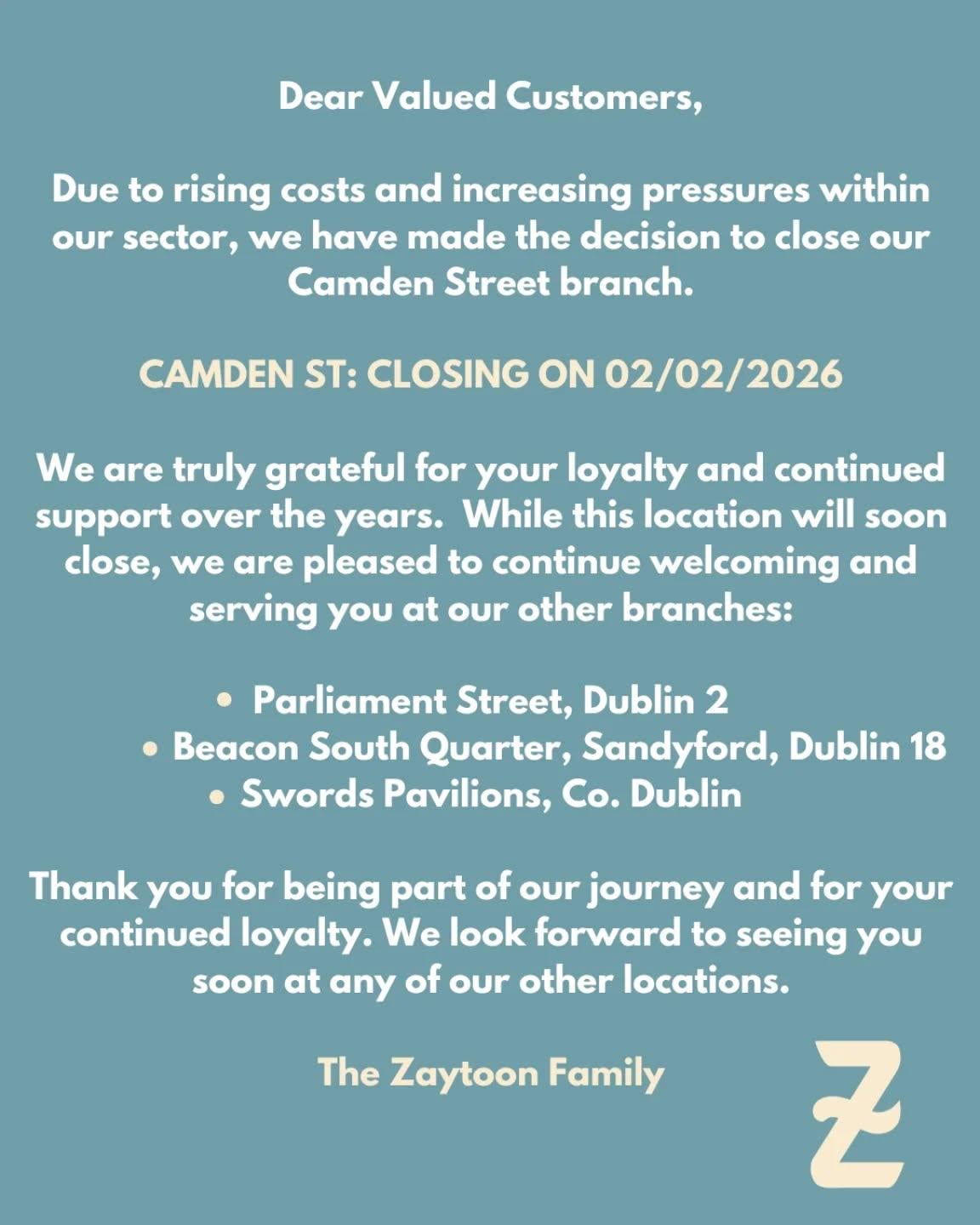 End of an era! There was nothing better than a zaytoon after a night in the Palace/Whelans etc back in ~2012 🥹