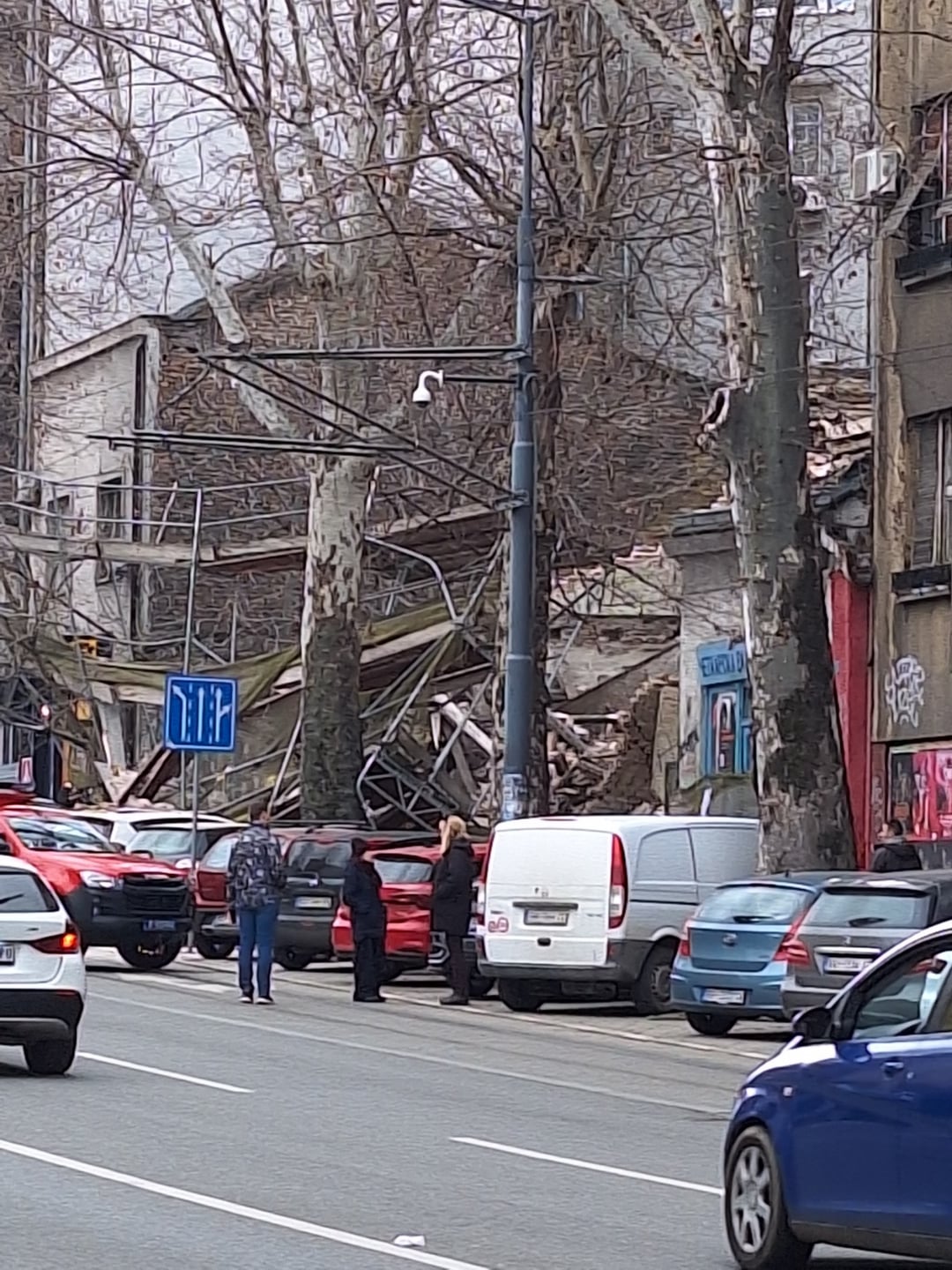 Ta kuća je još dok sam ja išao u srednju, pre 7 godina, bila u predinfarktnom stanju, stavili tobože skelu, a ne zna se šta se više nakrivilo, dal kuća ili mučena skela…