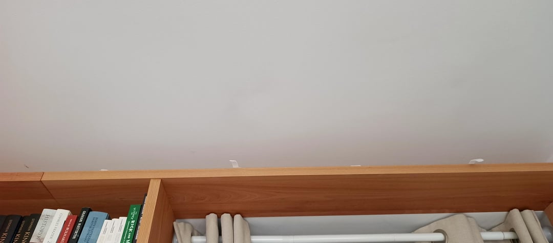 Dwa tygodnie temu zauważyłem pojawiające się okrągłe plamy na suficie. Na początku dwie, bardzo blade, teraz pojawia się trzecia, i są nieco ciemniejsze. W środku są w kolorze farby, po obwodzie lekko szare.