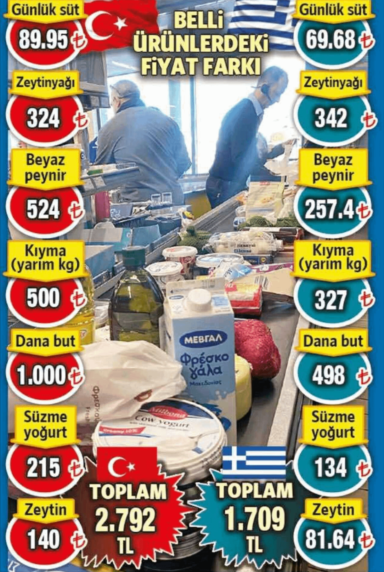 Günlük süt 90 😀 kerizsen olabilir, süzme yoğurt 215 liramı burda 5kg yoğurtu 150 ye fln aldım 2 gün önce , kıyma kg 500 lira bimde , düz beyaz peynir tam yağlı kilosu 200-300 liraya var hata indirimde 140 a bulmuştum, kilosu 500 liraya bergama tulum peyniri alırsın. Hükümete sallıycaz diye zar zurt karşılaştırmalar yapmaya gerk yok Yunanistan iyi bi durumda ülke değil 25 yıl önceden daha fakirler şuan mesela. He böyle haberler yapsınlar ama Halk bunlardan anlıyor.