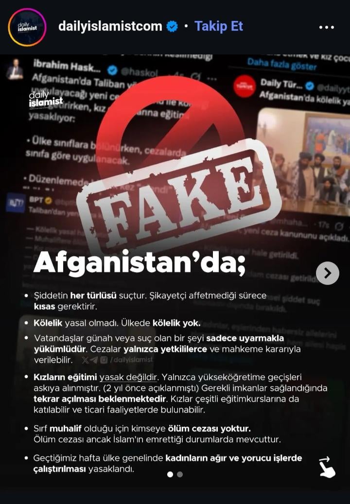 Afganistan 'da Taliban'ın köleliği yasallaşması ile ilgili kanun spekülatif olmaktan ziyade gerçektir, çünkü Afganistan subredditin gönderisi burada gördüğünüz gönderiye karşı netlik sağlayarak, doğrulanmış kaynaklarla bunu açıklamaktadır.