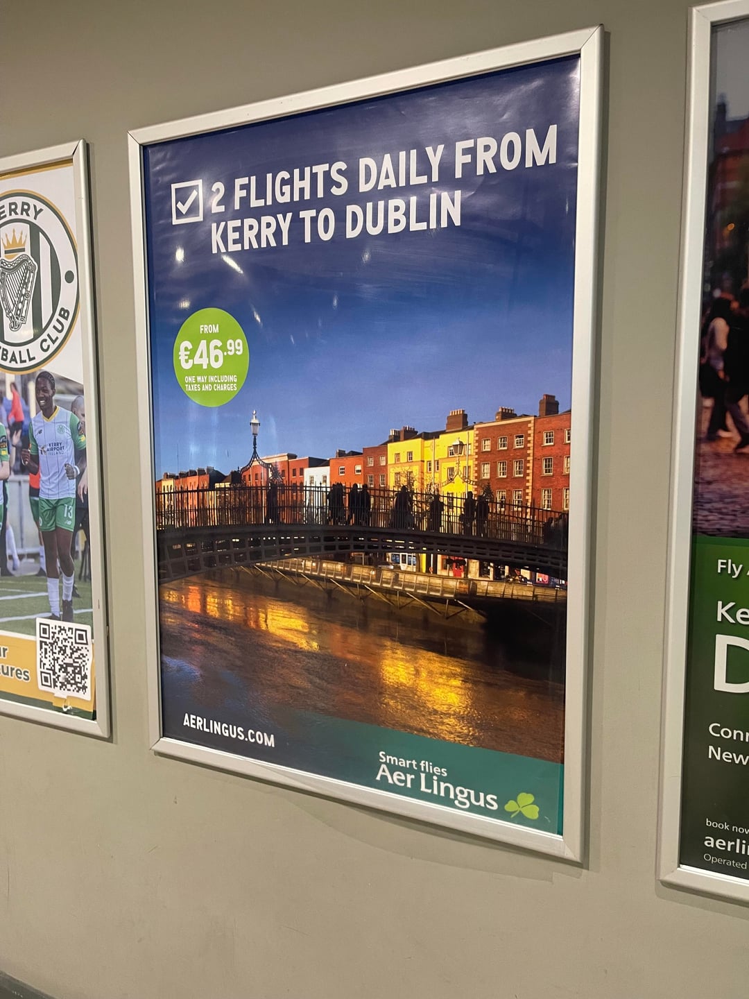 If you take a trip to Kerry Airport you would notice these historic advertisements for Aer Lingus regional services to Kerry which haven’t existed ever since the collapse of Stobart Air, I think its nice that they have kept these relics behind