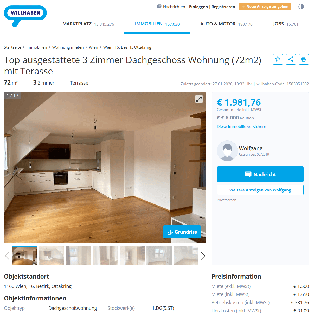 In Wien ist jetzt seit einiger Zeit für Normalverdiener nicht mehr möglich zumindest semi-zentral zu wohnen. Und diese konkrete Wohnung hier ist für mich persönlich ein neues Negativ-Highlight (Hernals S-Bahn-Station)