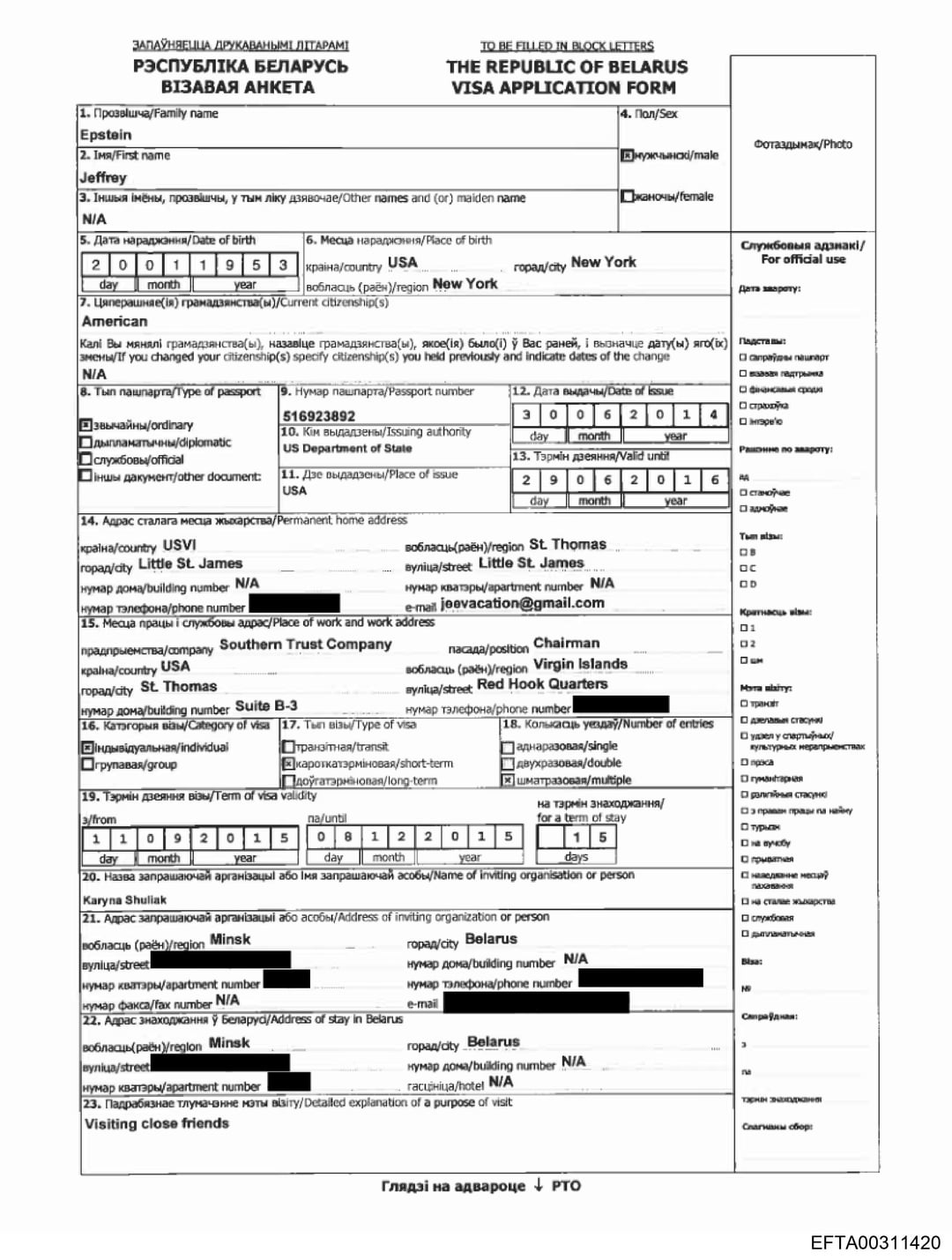 Эпштейн подавал документы на белорусскую визу — NoGene8708 Tags:Belarus Leave a ReplyYou must be logged in to post a comment.