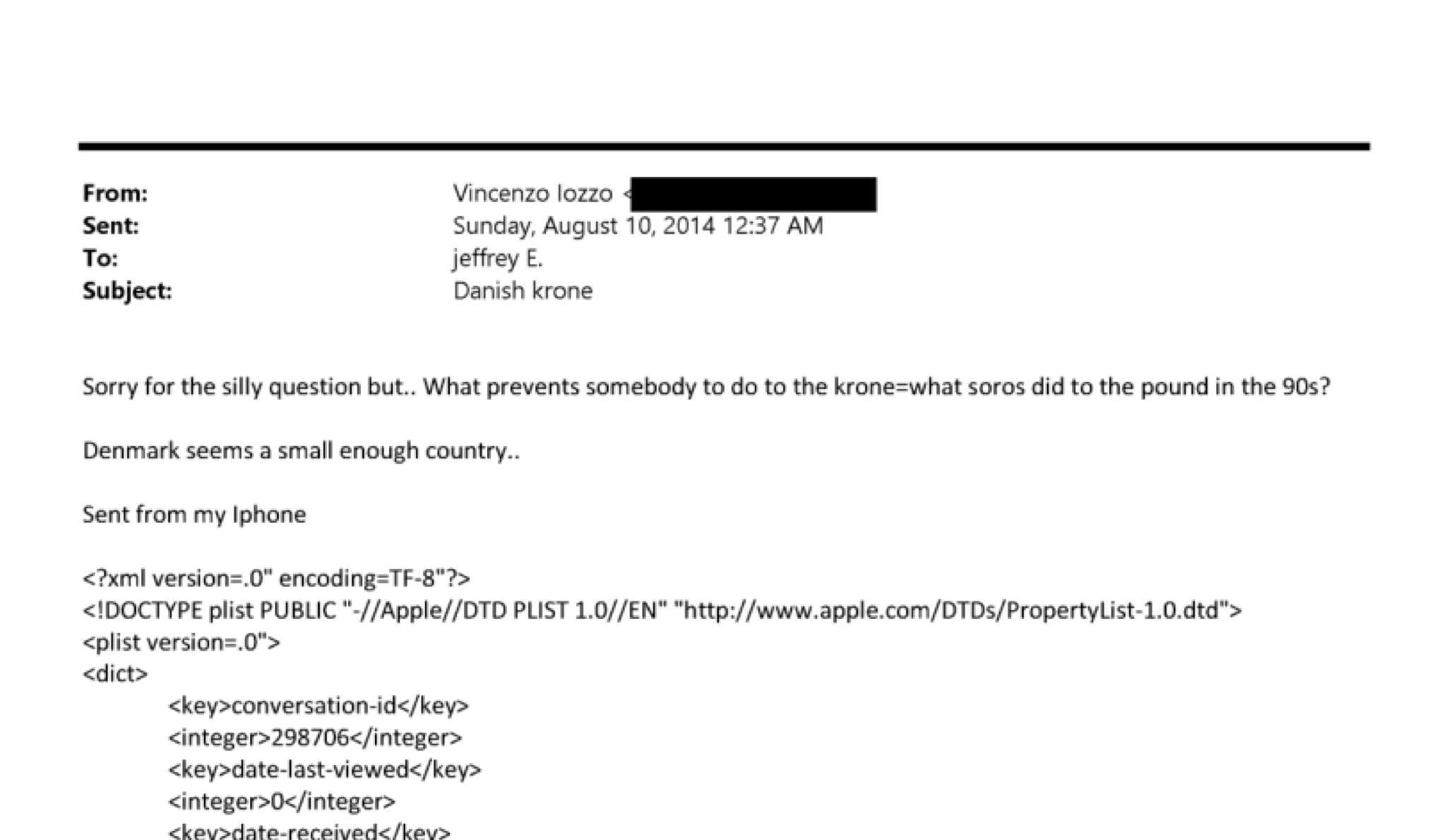3. Ret interessant timing. Den her mail blev sendt i august 2014 og bare få måneder senere kom den danske krone faktisk under massivt spekulativt pres i januar 2015.