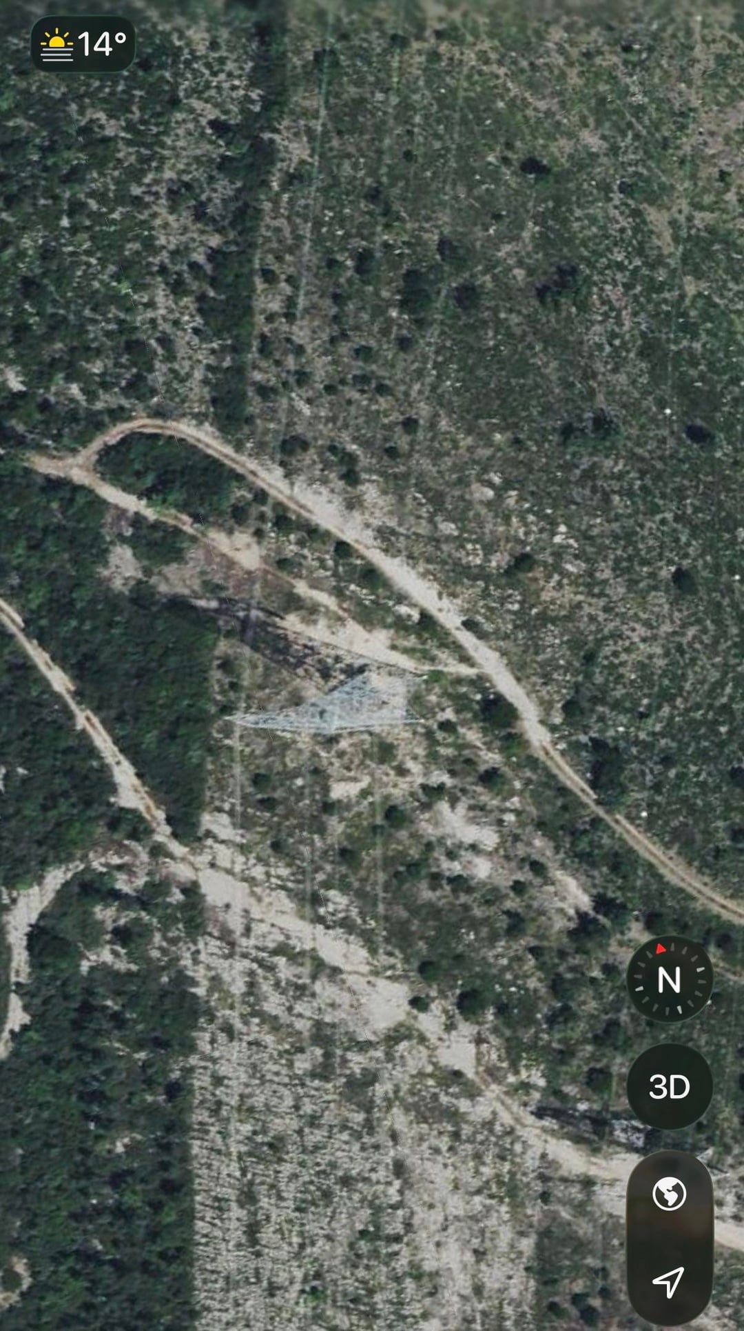 As linhas devem todas passar acima da linha das árvores e nem sequer deviam ter árvores de grande porte nas proximidades (como se pode ver no mapa nas últimas imagens).